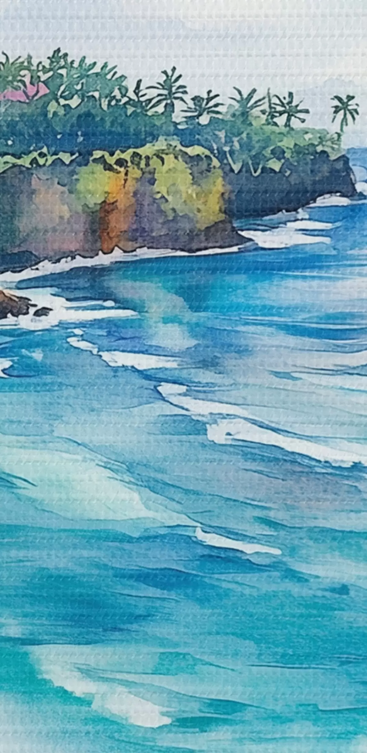 Obraz Tropická oceánska pláž, palmy, kvety, akvarel Nr. s44145