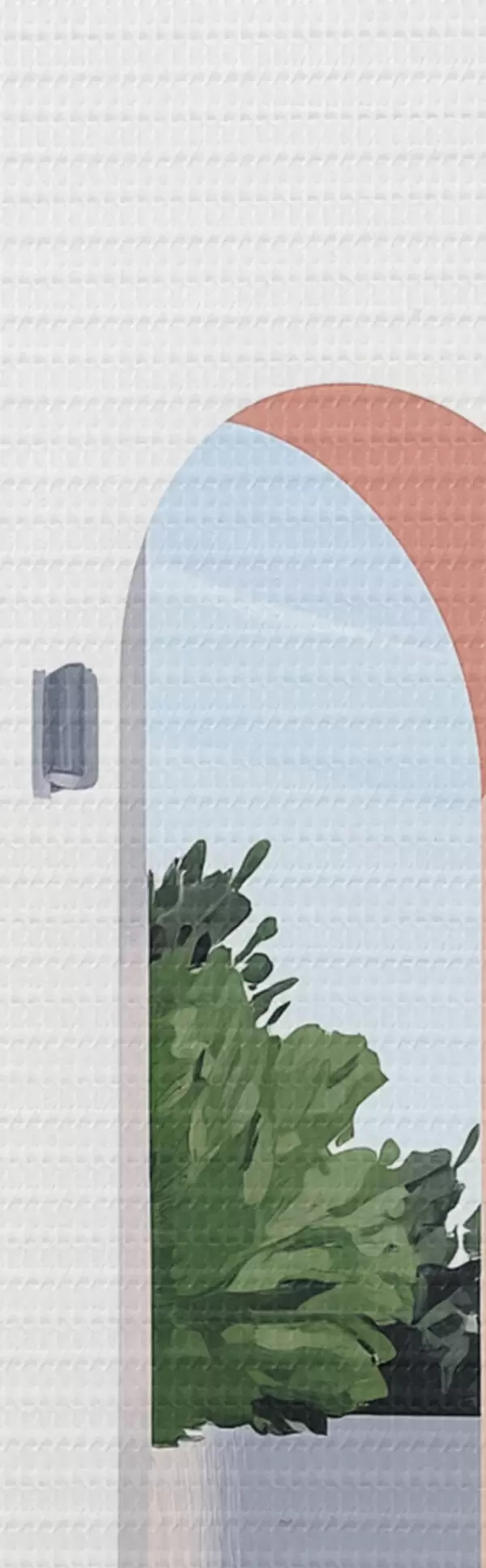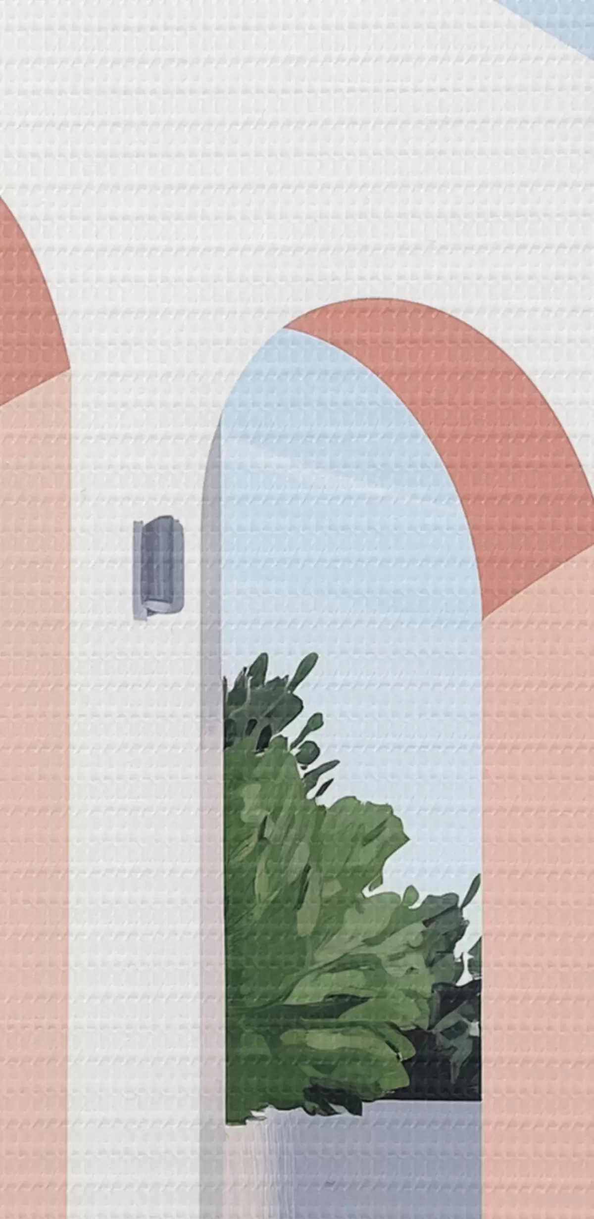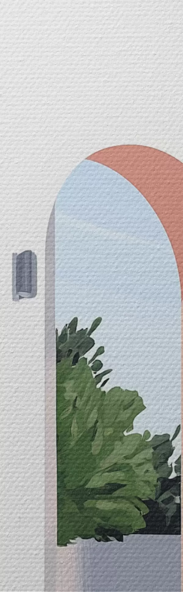 Obraz Biela vila s oblúkmi a tropickou záhradou, stredomorský, bytový štýl Nr. s44153