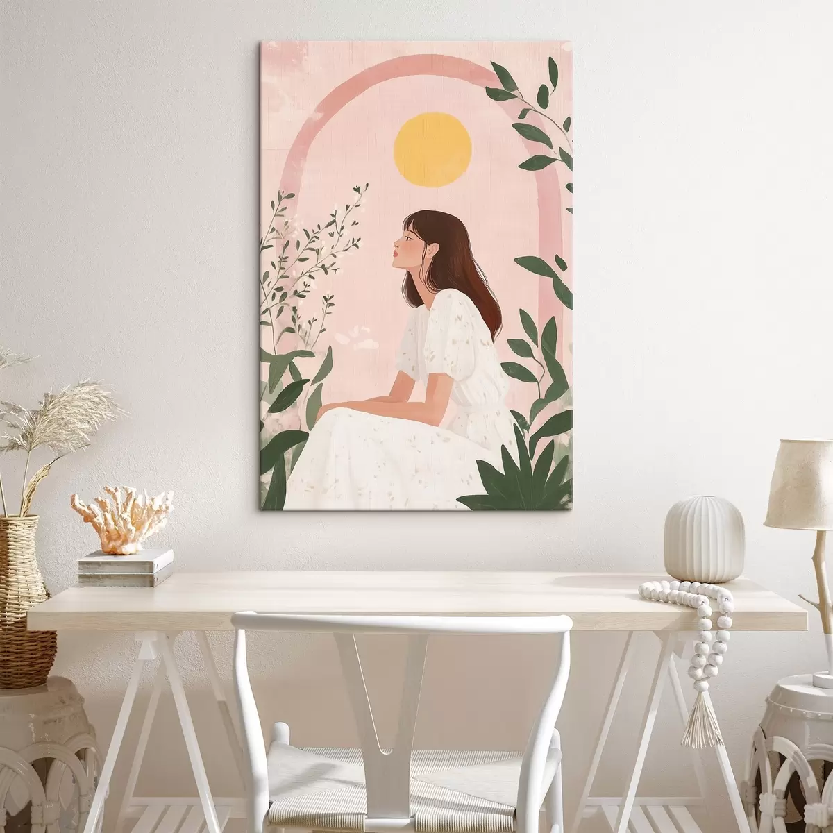 Obraz Krásna žena v tropickej záhrade, slnko, pastelové farby Nr. s44155