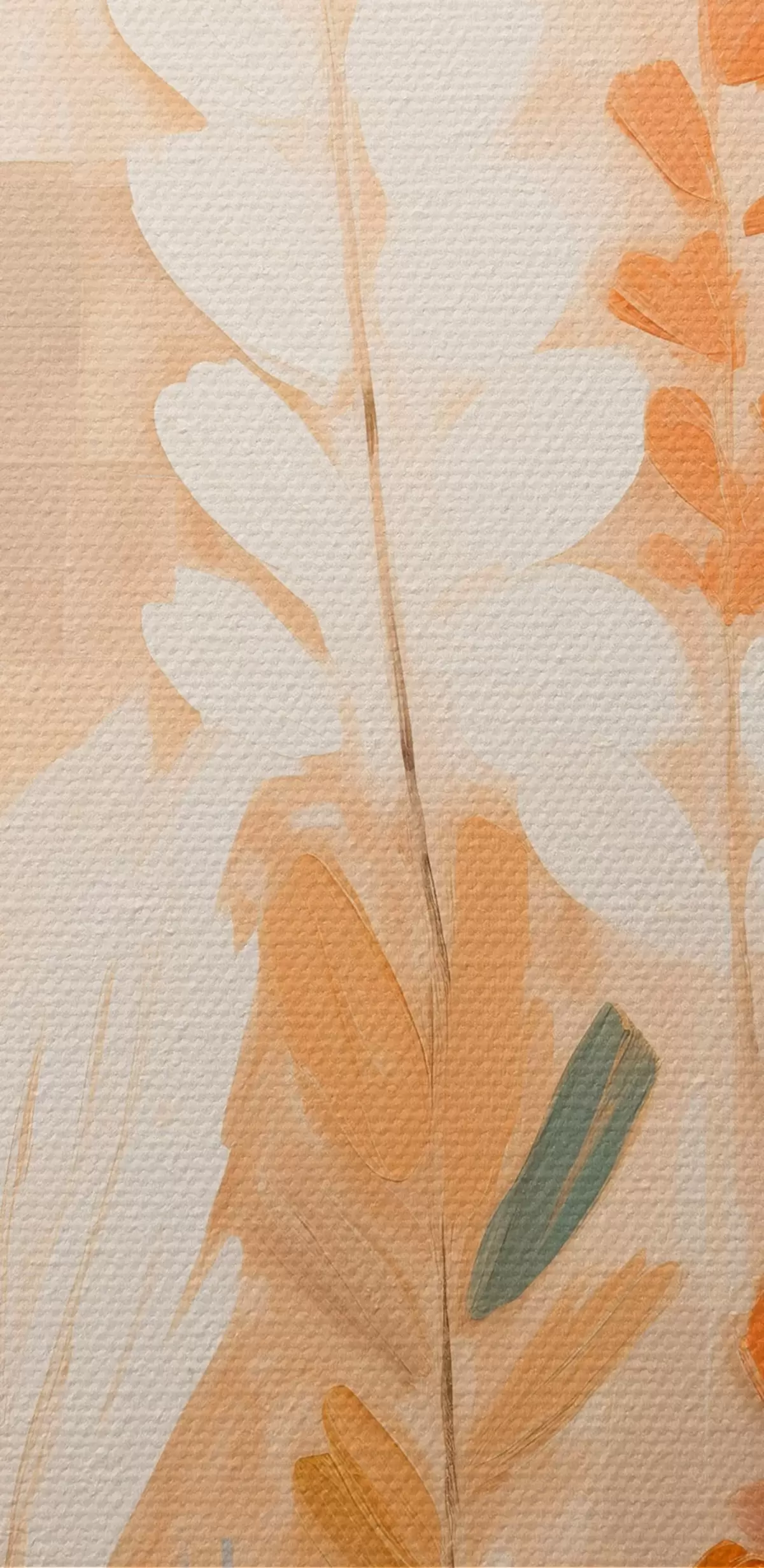 Obraz Teplá abstrakcia s poľnými trávami a kvetmi v béžovo-oranžovej palete v secesnom štýle Nr. s44252