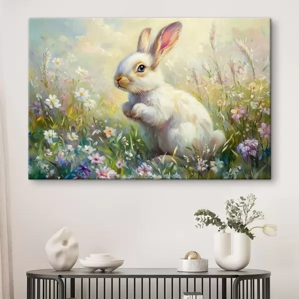 Obraz Biely zajačik medzi kvetmi Nr. s44326