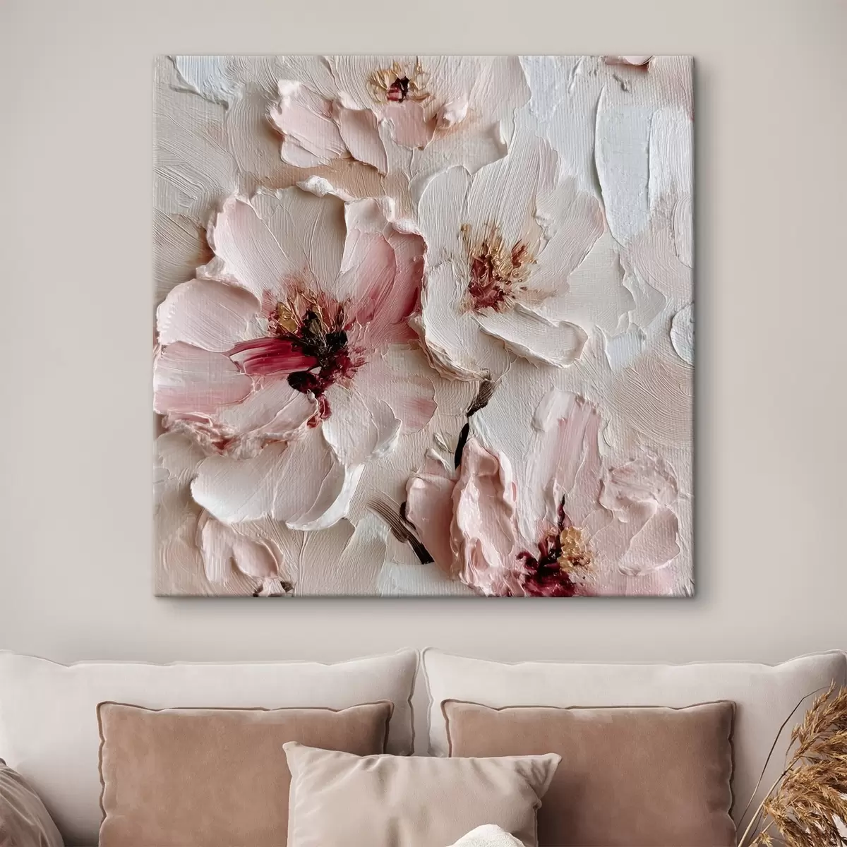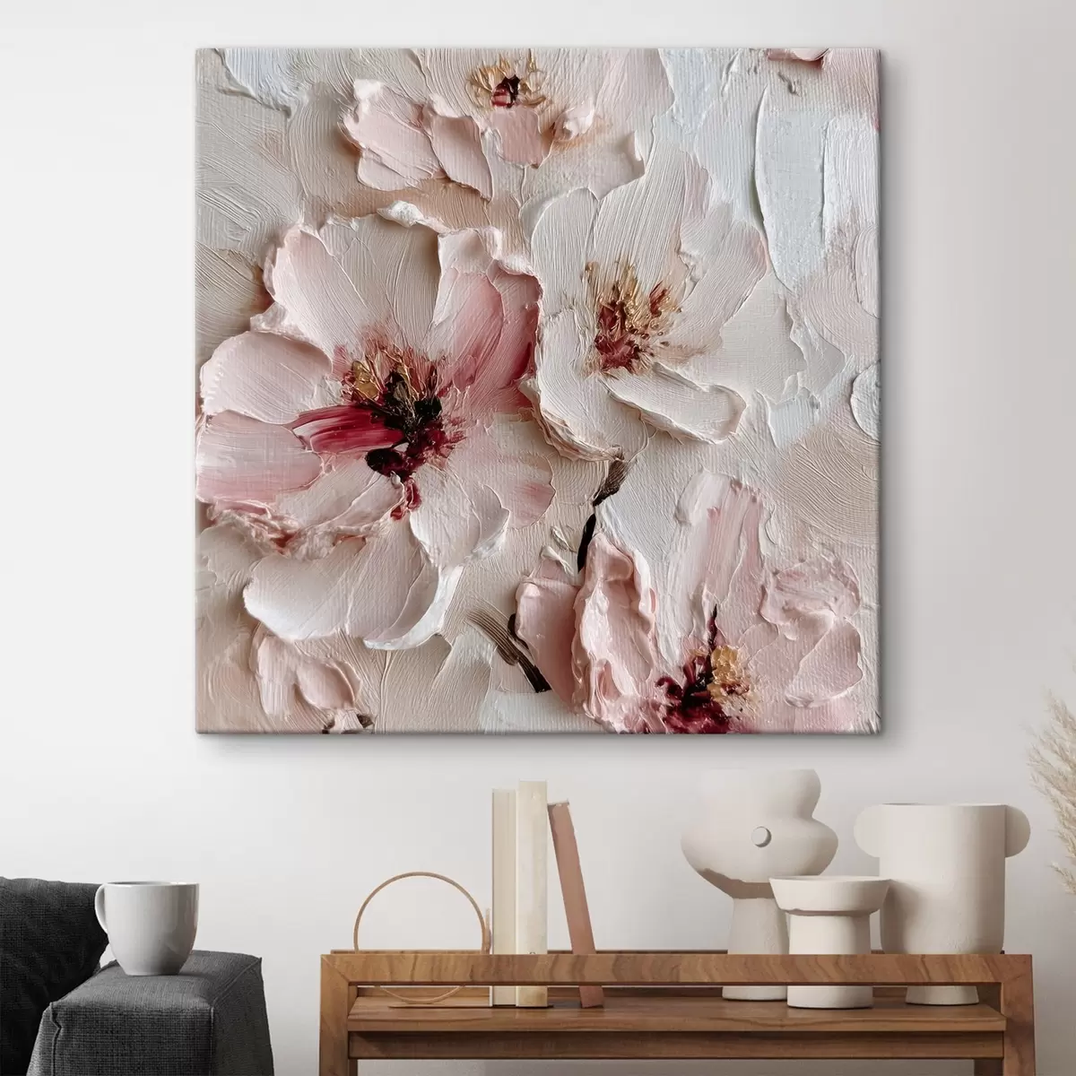 Obraz Kvety s imitáciou v štýle impasto v ružových a bielych ťahoch Nr. s44333