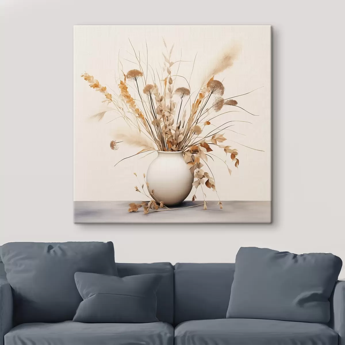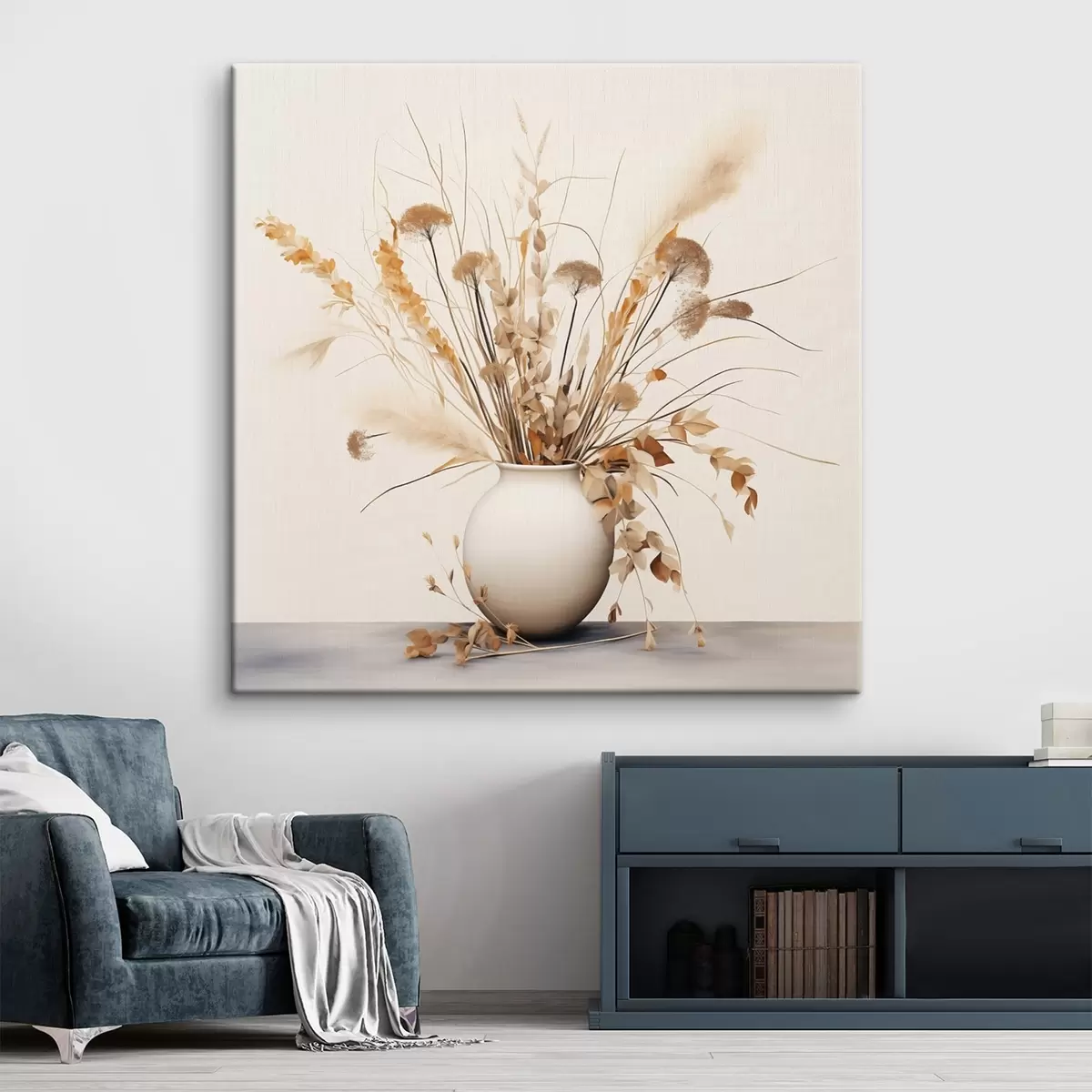 Obraz Aranžmán zo sušených tráv a kvetov v bielej váze Nr. s44348