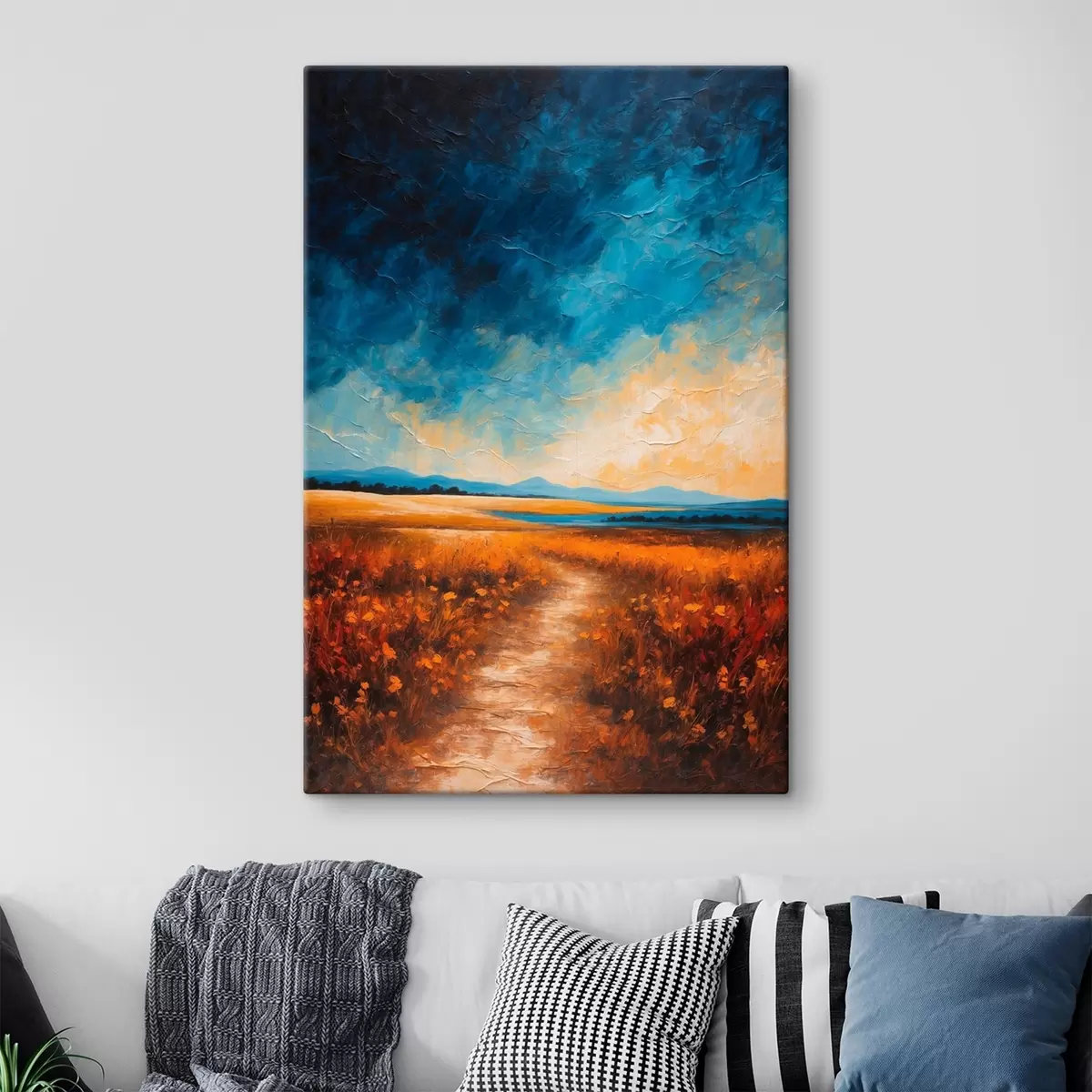 Obraz je možné zavesiť ihneď po jeho prevzatí. Obraz bude napnutý na drevených nosidlách so šírkou 2 cm.