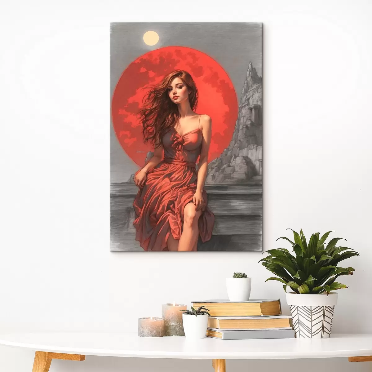 Obraz Dievča na červenom pozadí mesiaca Nr. s44448