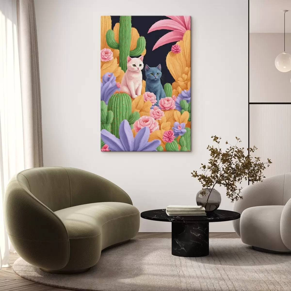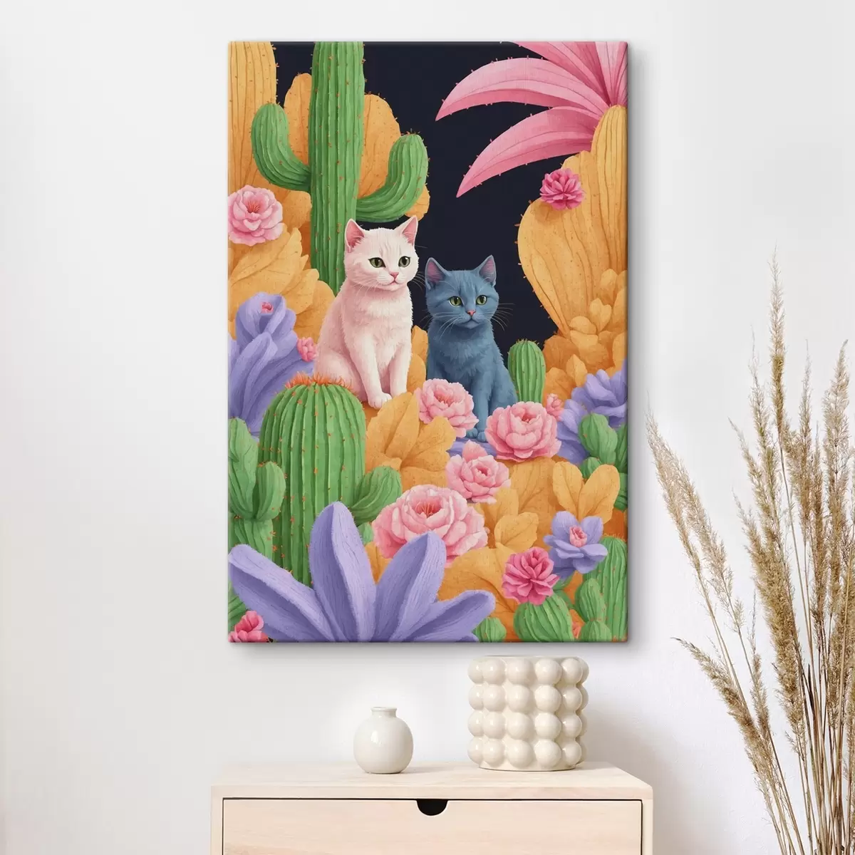 Obraz Umelé mačky medzi kvetmi a kaktusmi Nr. s44452
