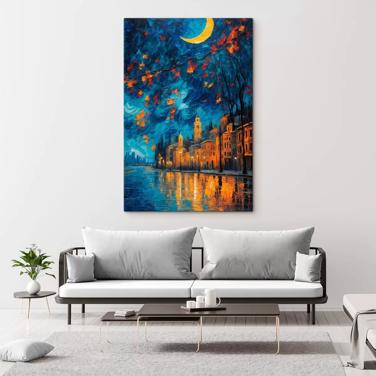 Obraz je možné zavesiť ihneď po jeho prevzatí. Obraz bude napnutý na drevených nosidlách so šírkou 2 cm.