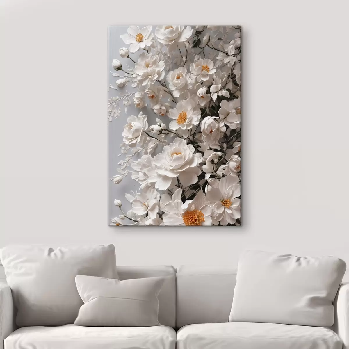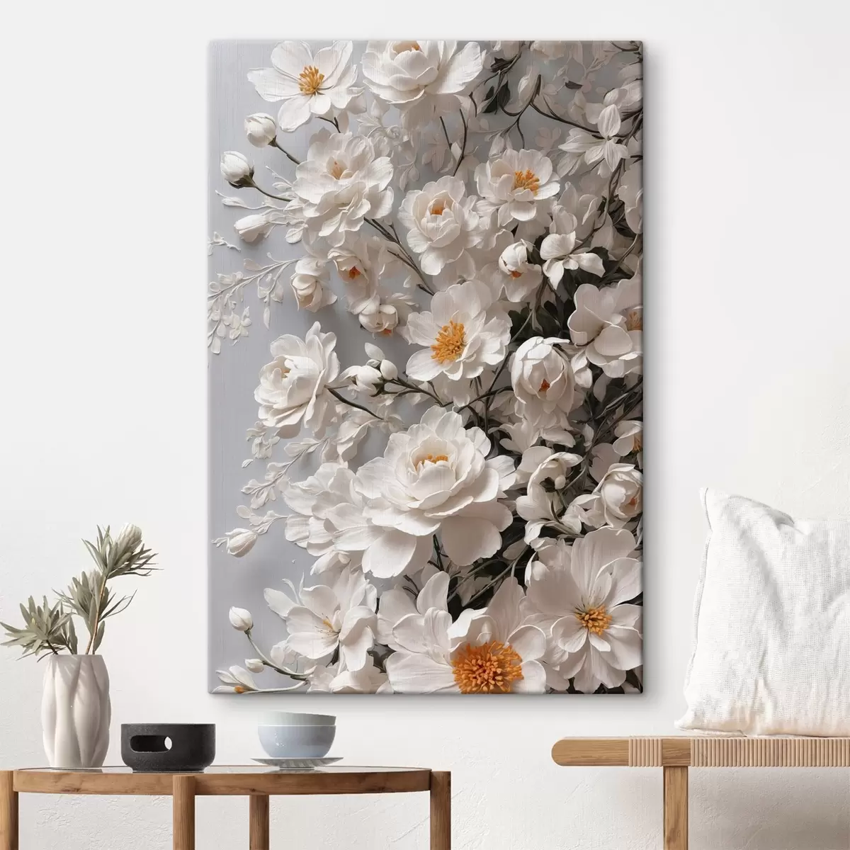 Obraz Biele kvety a listy na bielom pozadí Nr. s44465