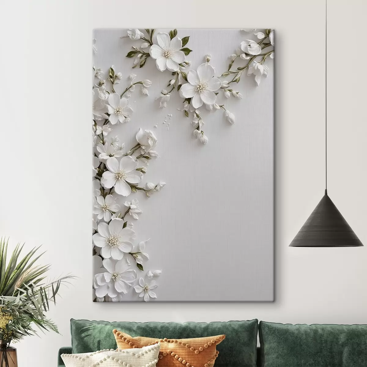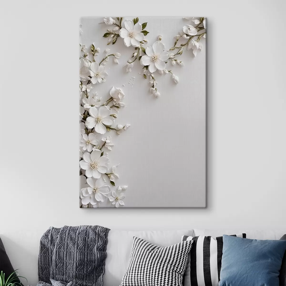 Obraz Biele kvety na bielom pozadí steny Nr. s44466