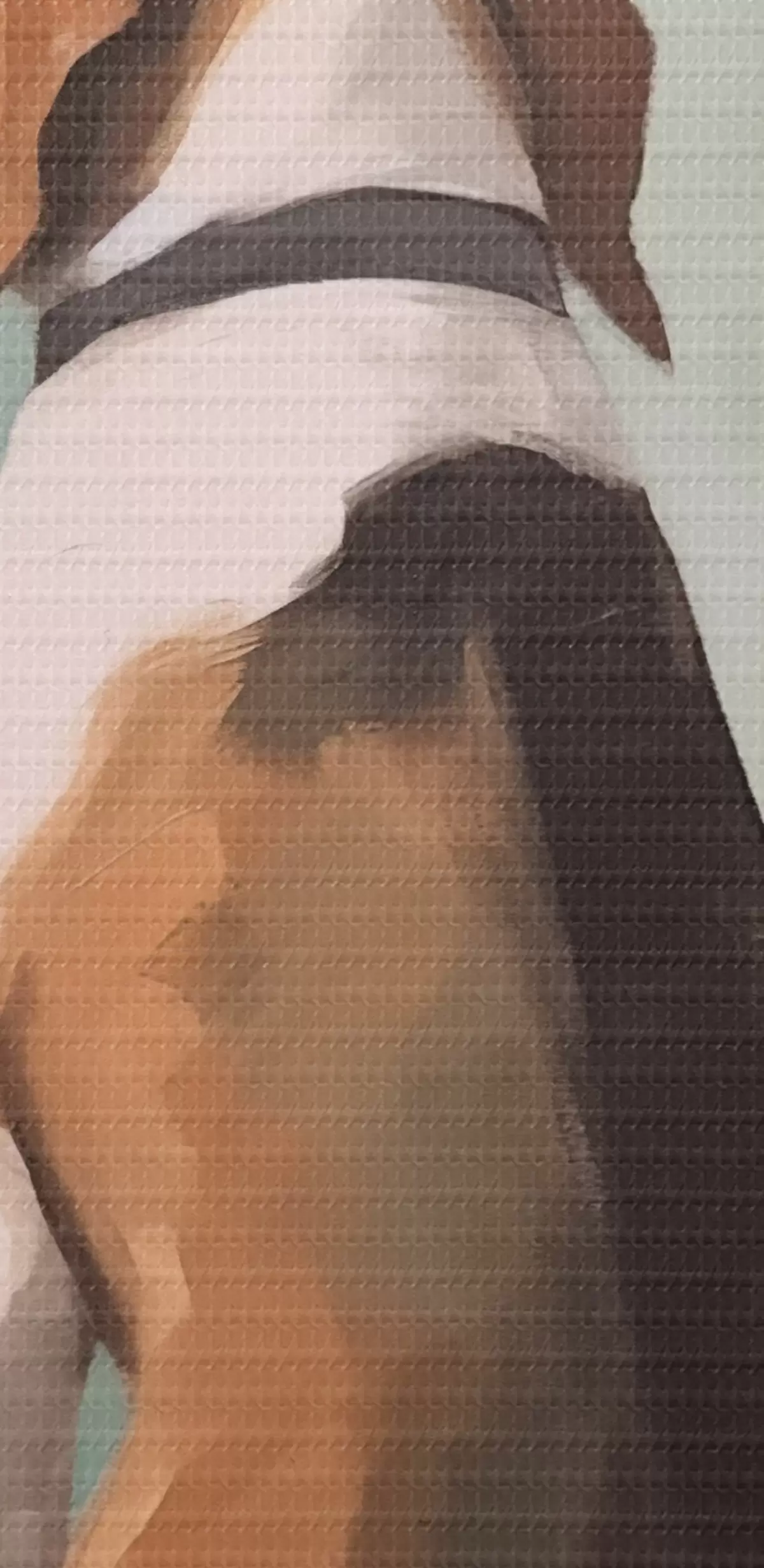 Na natiahnutie plátna na nosidlá bez poškodenia obrazu používame zrkadlový obraz.