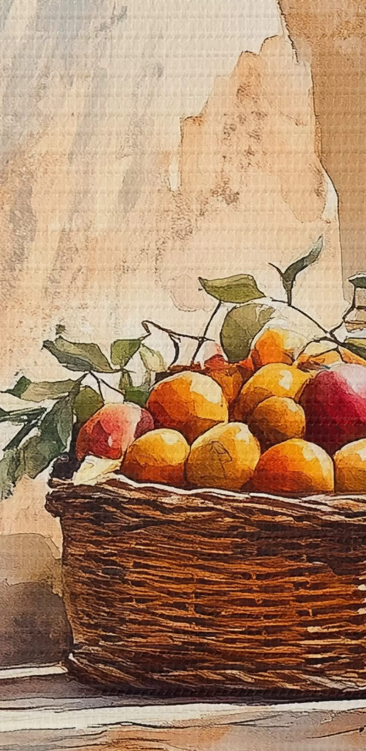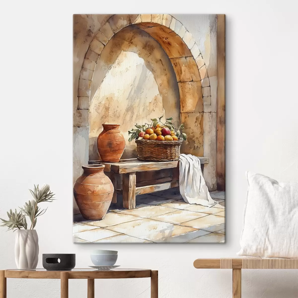 Obraz Estetické vázy a prútený košík s pomarančmi, Toskánsko, rustikálny štýl Nr. s44605
