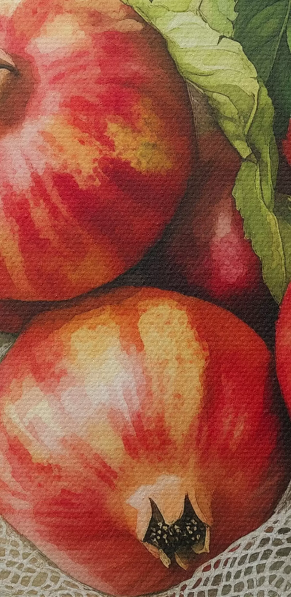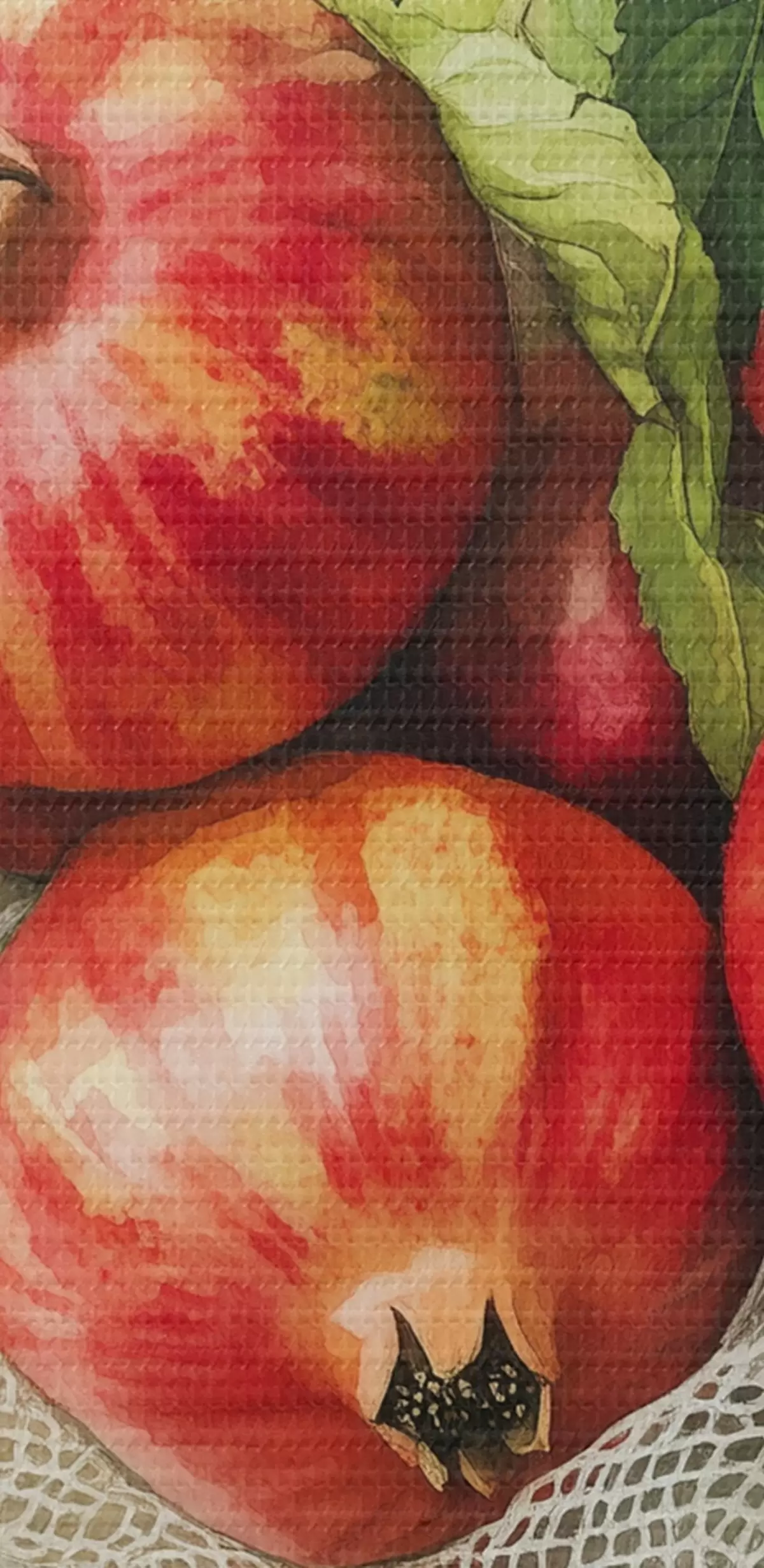 Obraz Granátové jablká s lístkami mäty na ľanových obrusoch, rustikálny štýl Nr. s44611