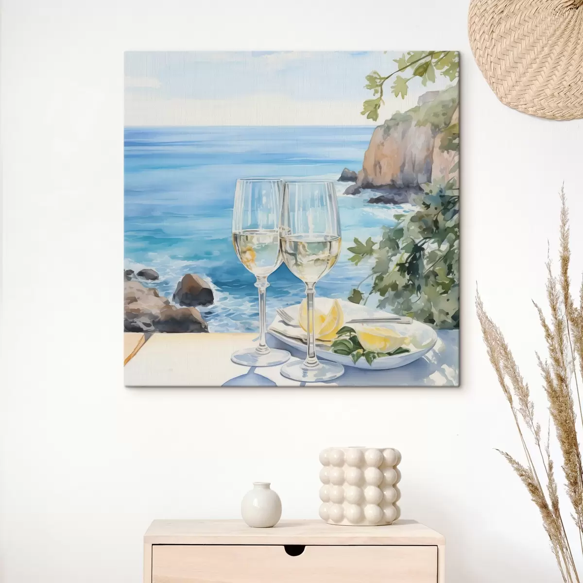 Obraz Poháre vína na pozadí mora Nr. s44644