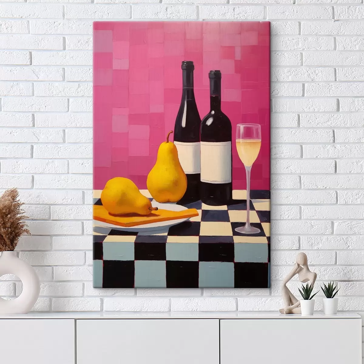 Obraz Hrušky, pohár vína a dve fľaše vína Nr. s44683