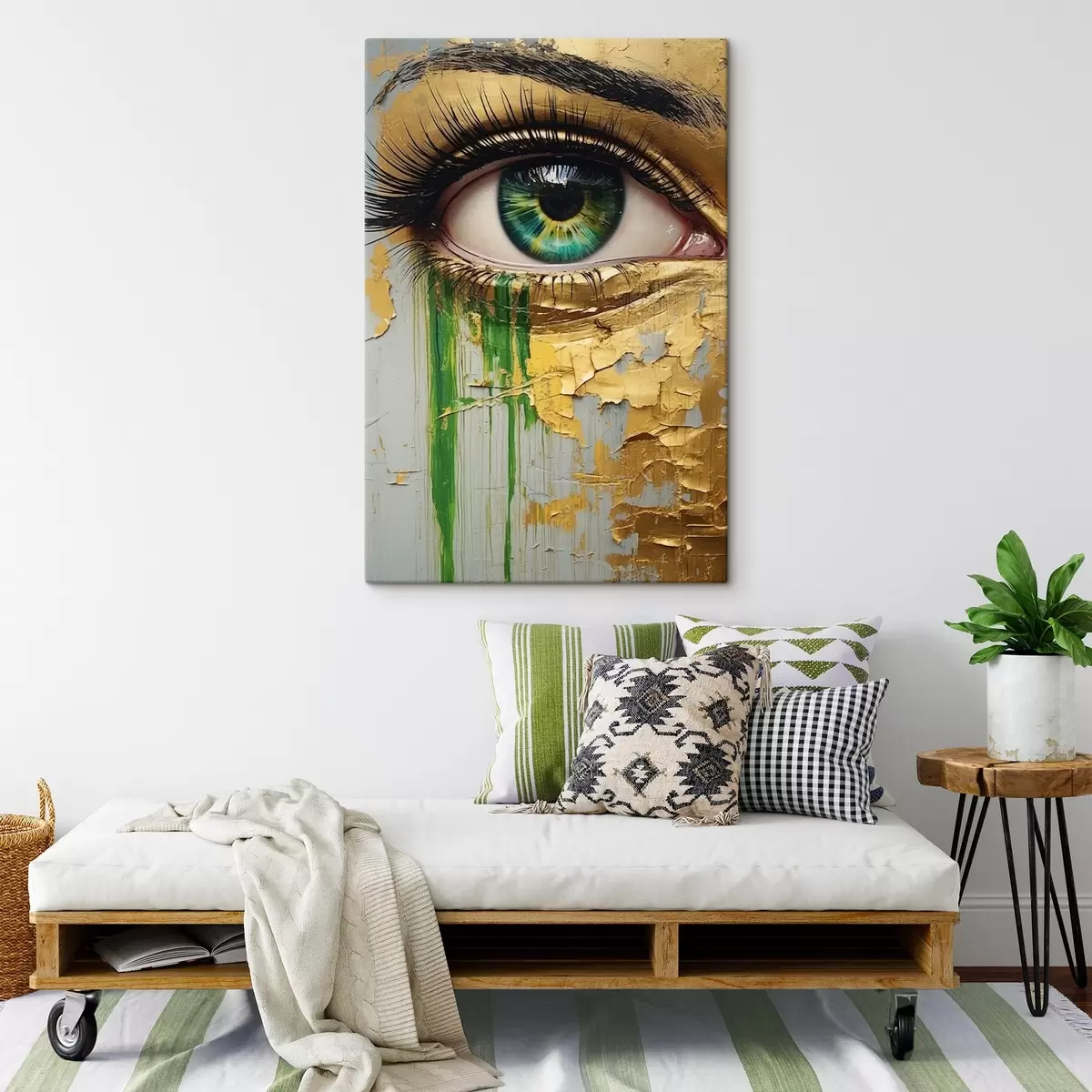 Obraz Zelené oko na pozadí popraskanej farby Nr. s44690