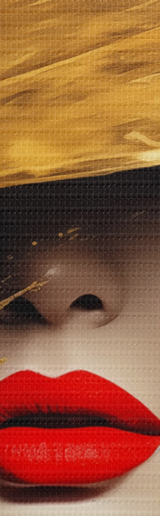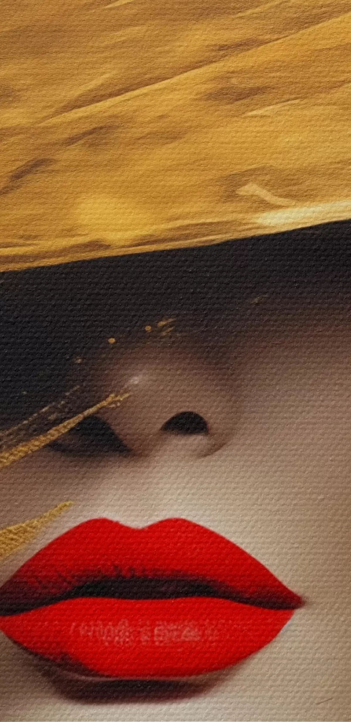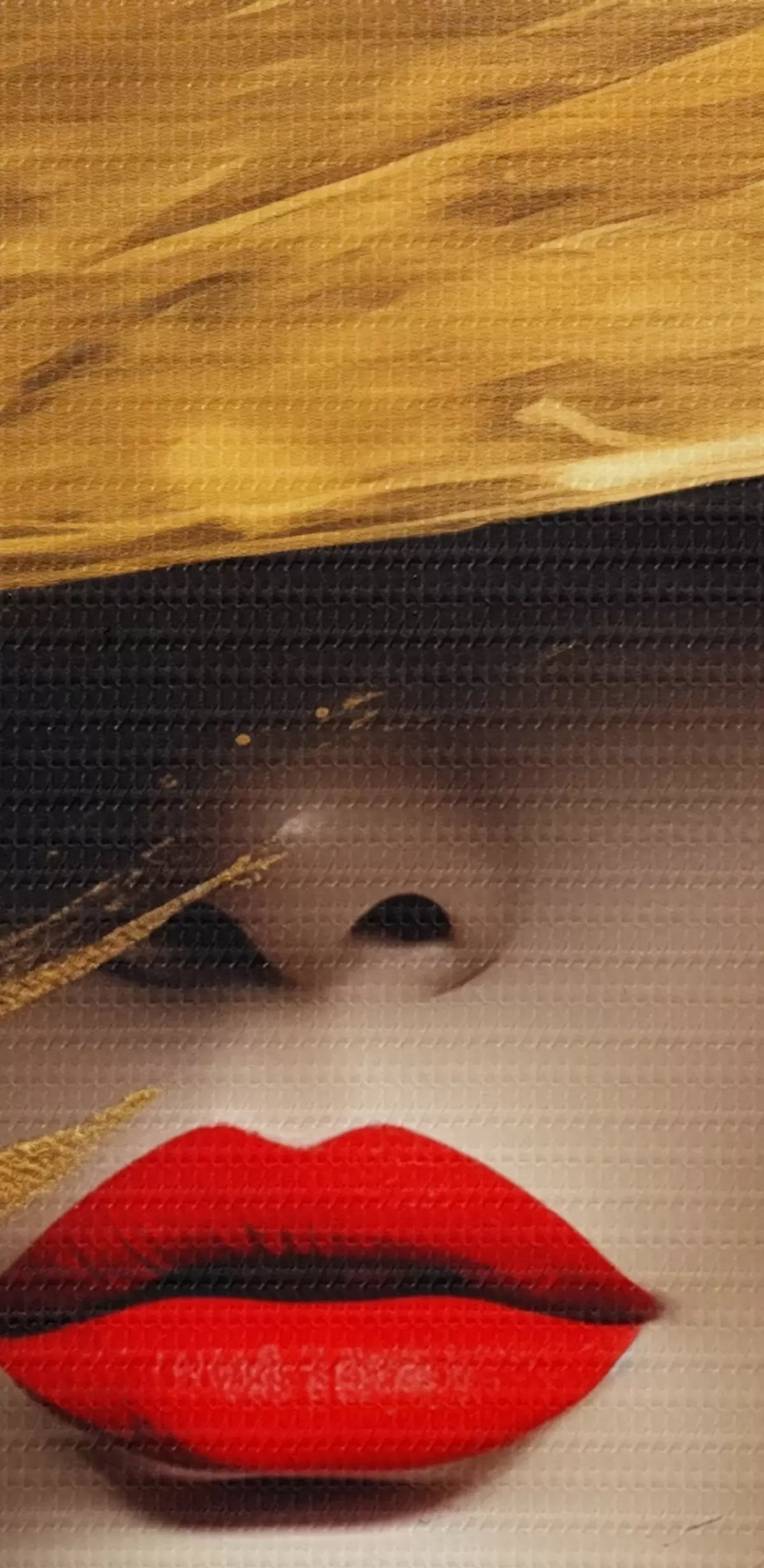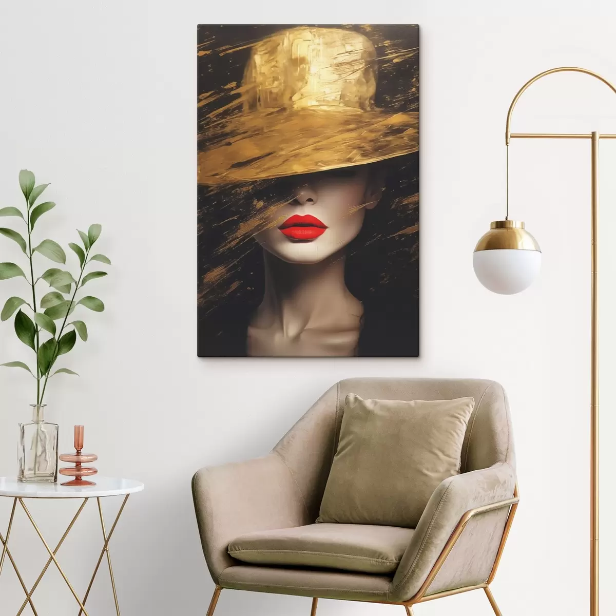 Obraz Ženská tvár s červeným rúžom pod širokým klobúkom Nr. s44691
