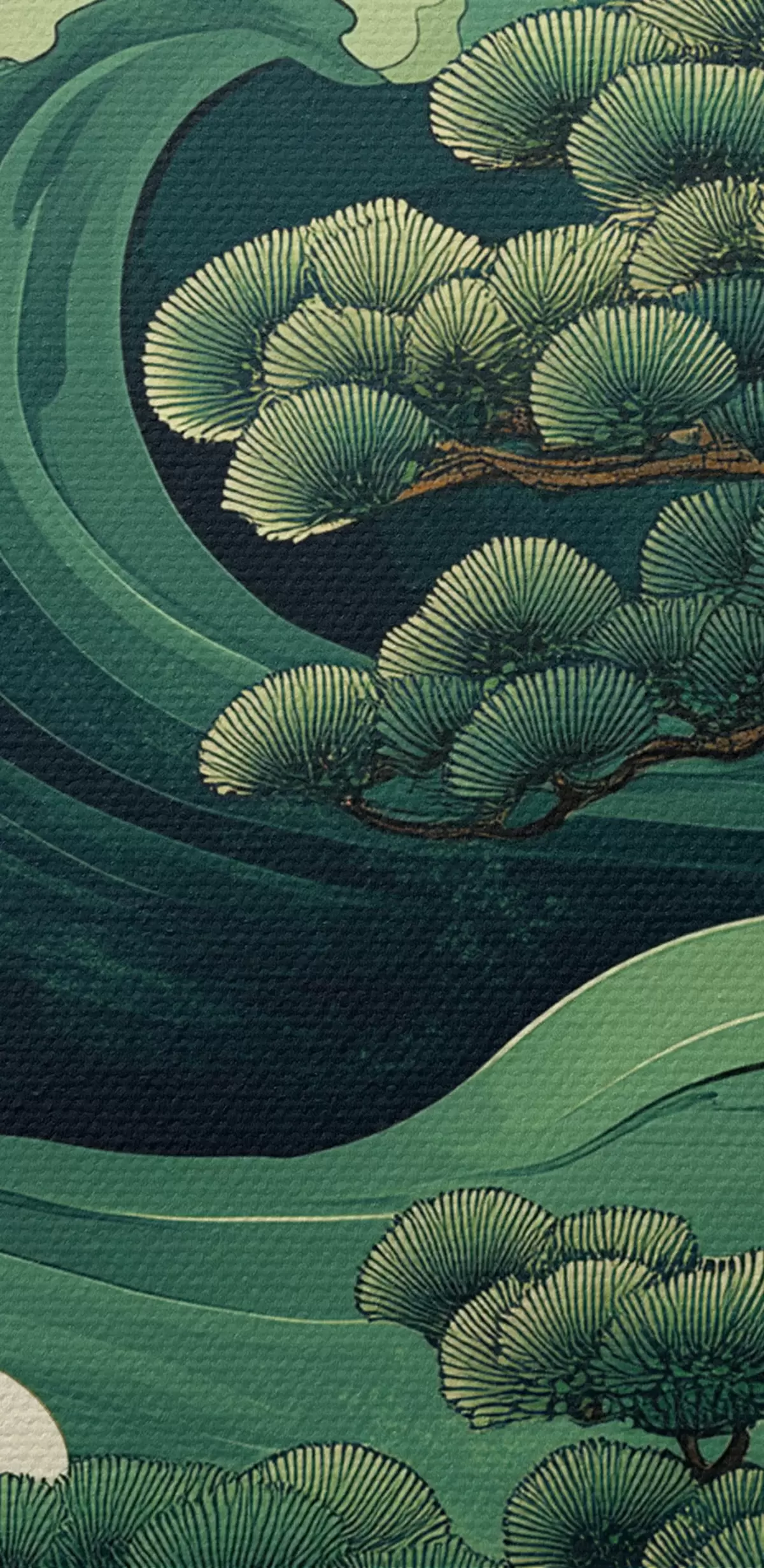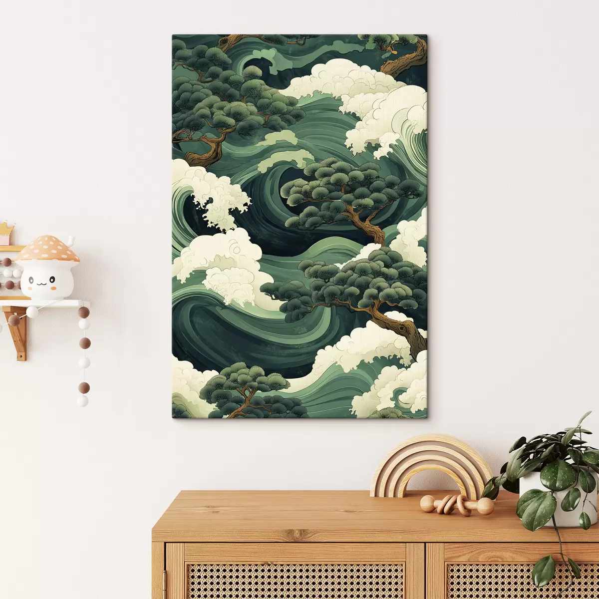 Obraz Kresba v čínskom štýle s morskými vlnami a borovicami Nr. s44719