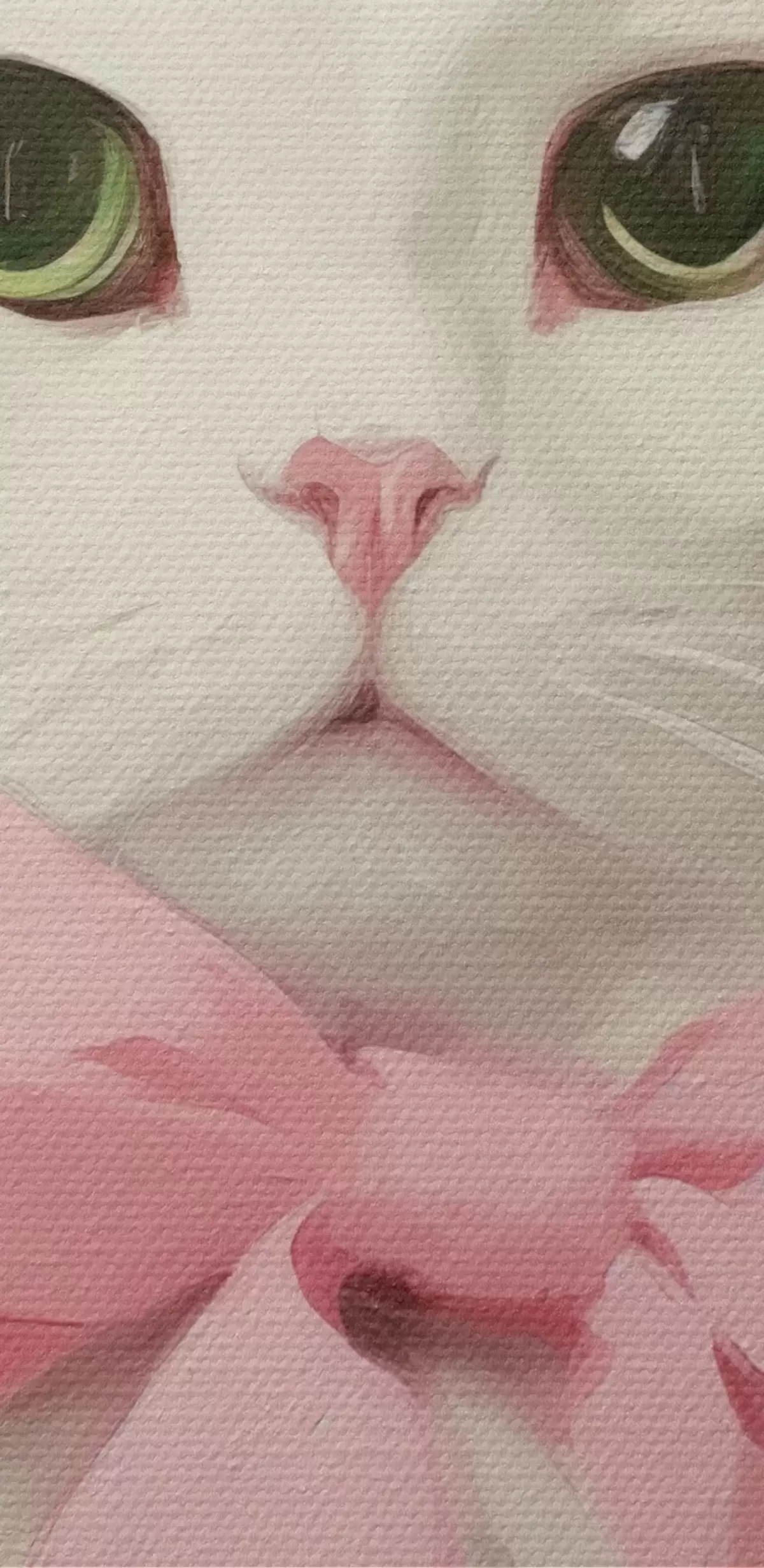 Obraz Biela mačka s ružovou mašľou Nr. s44739