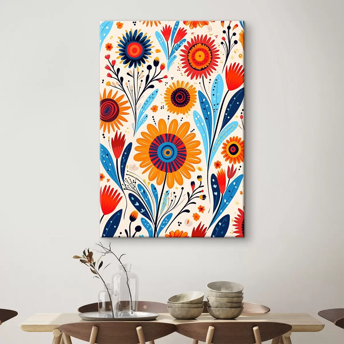 Obraz Štylizované kvety v modrej a oranžovej palete Nr. s44761