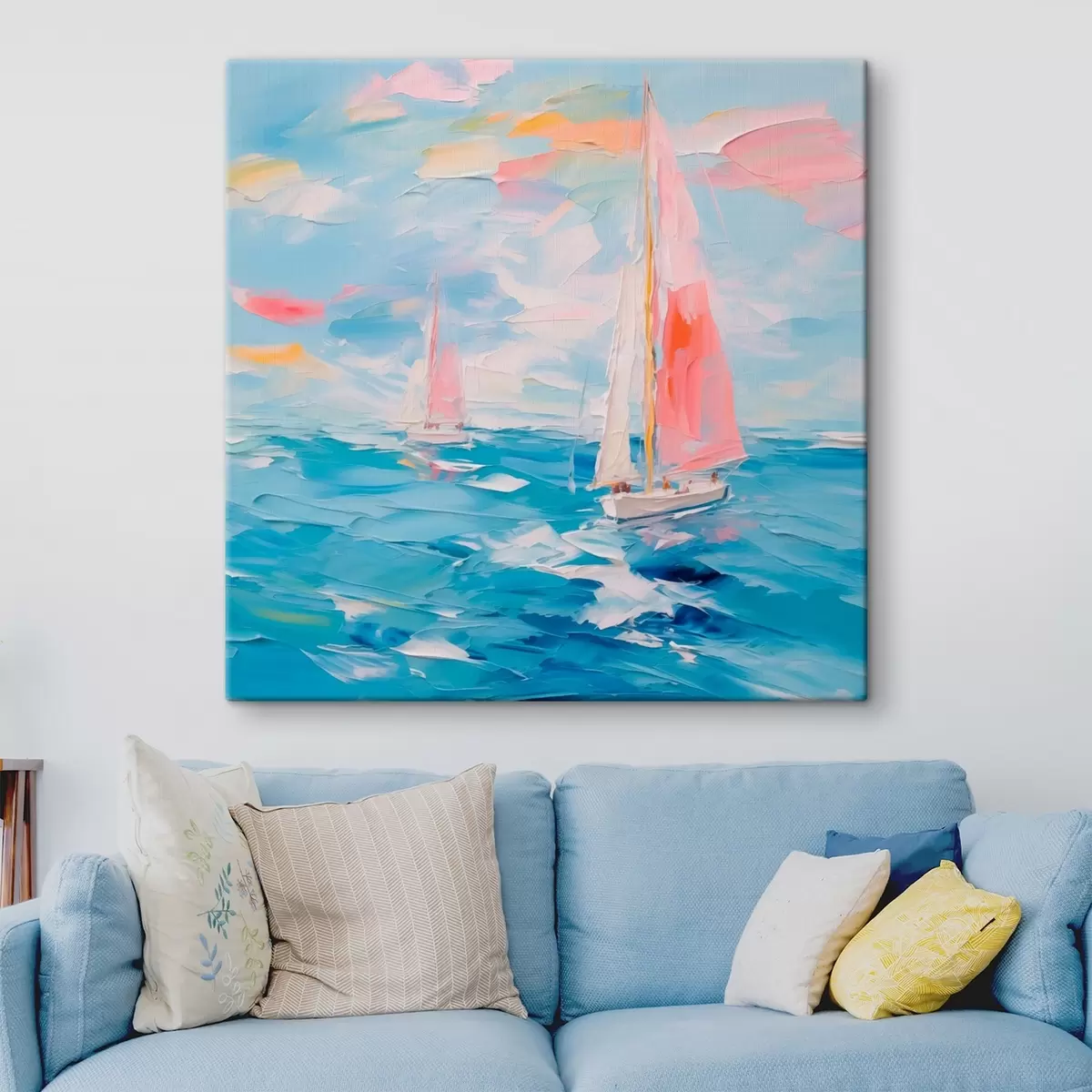 Obraz je možné zavesiť ihneď po jeho prevzatí. Obraz bude napnutý na drevených nosidlách so šírkou 2 cm.