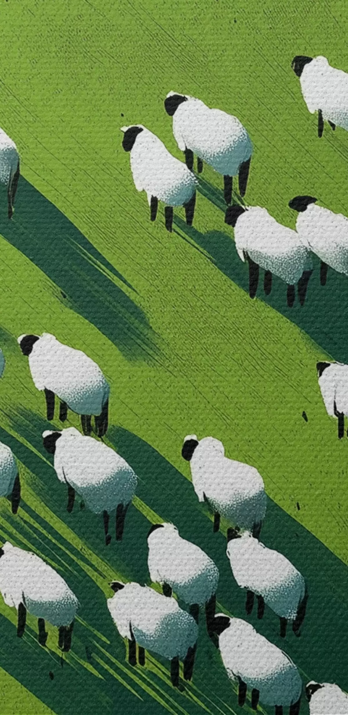 Obraz Zelené pole so stádom oviec, abstrakcia, letecký pohľad Nr. s44793