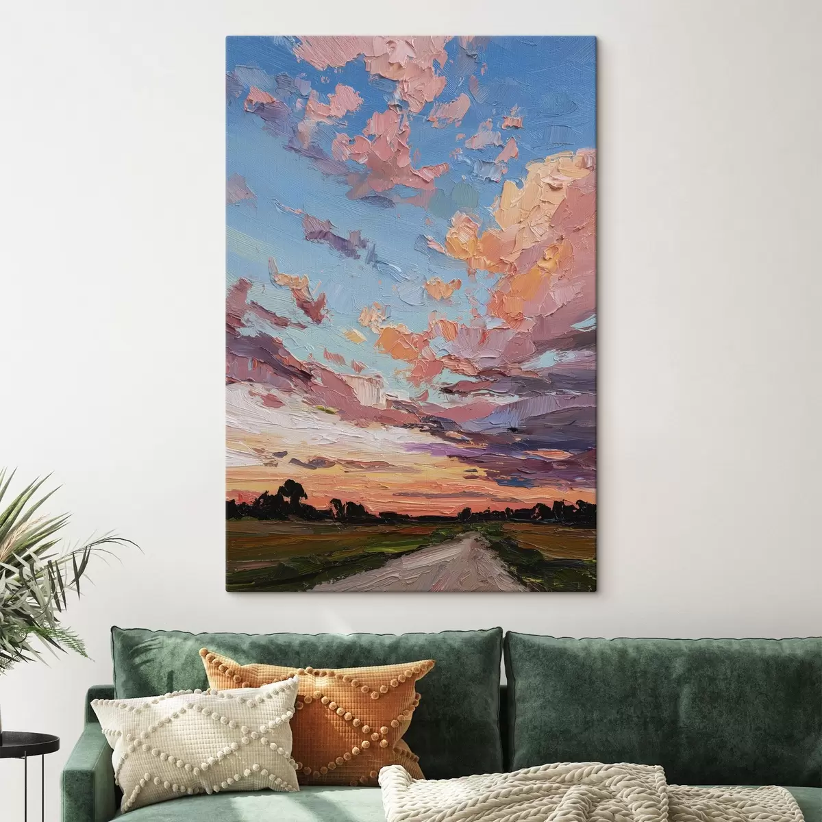 Obraz Obloha pri západe slnka, cesta v poli, živé ťahy štetcom, imitácia v štýle oleja Nr. s44795