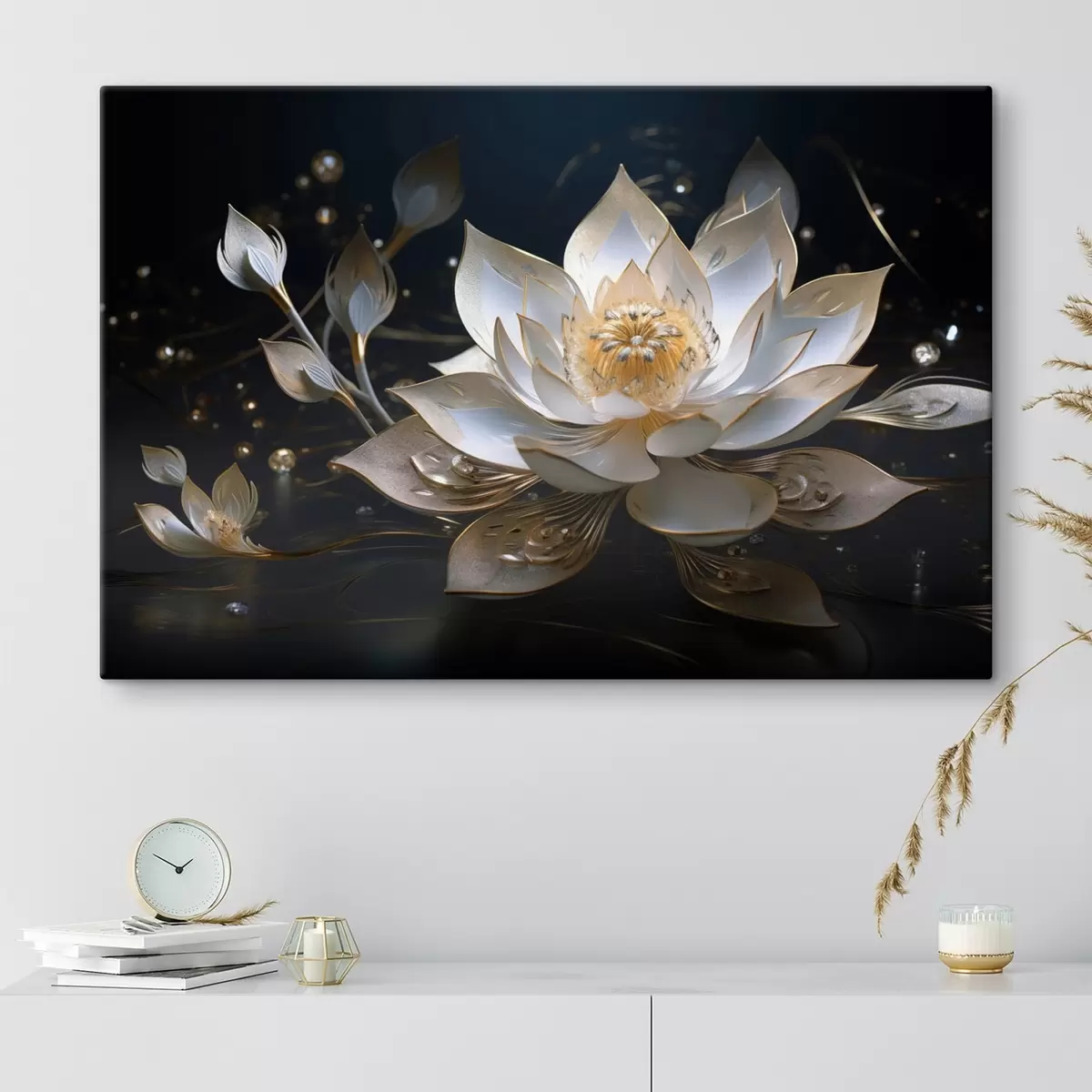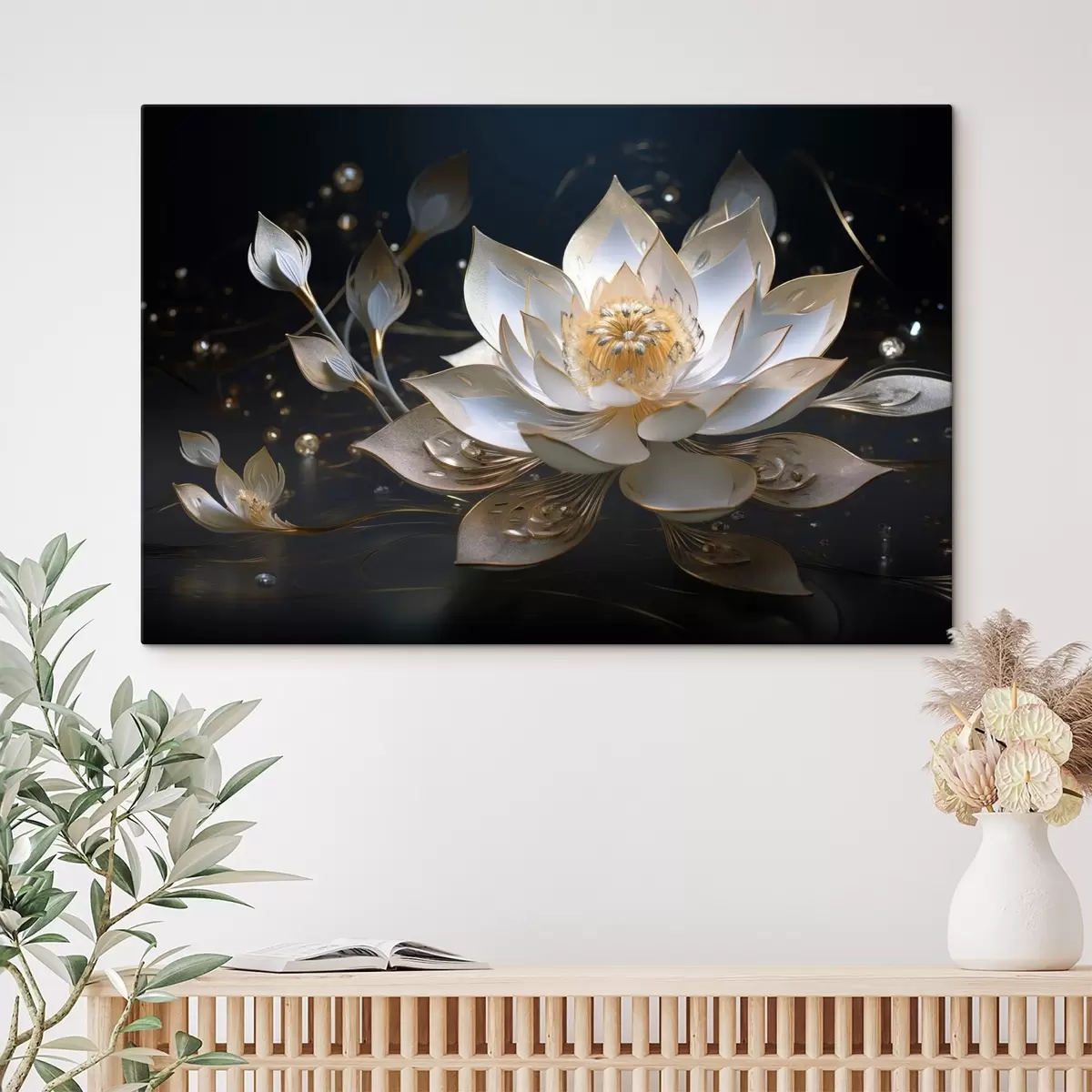 Obraz Lotos s elegantnými vzormi na tmavom pozadí Nr. s44841