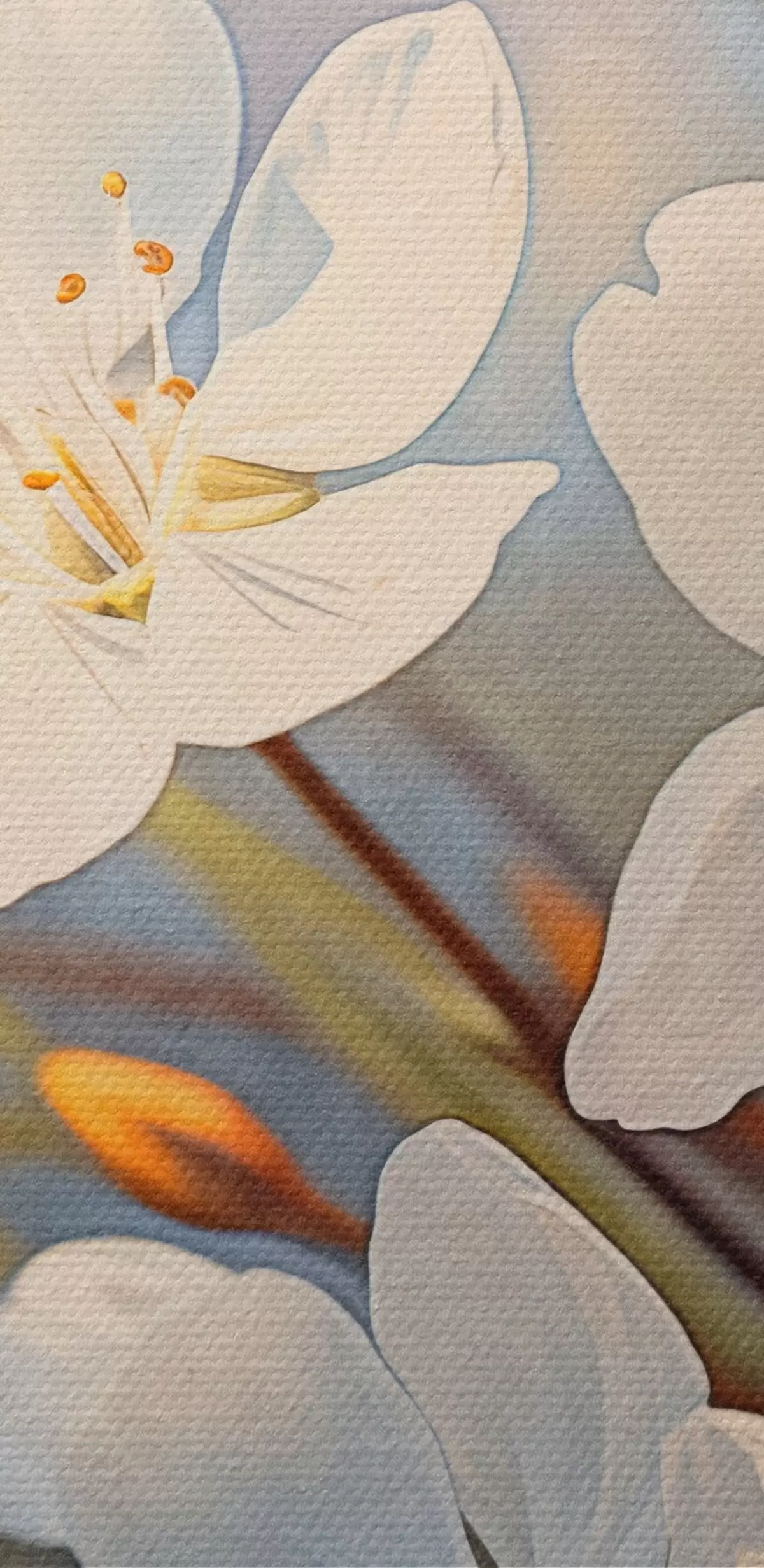 Obraz Biele textúrované čerešňové kvety v akvarelovom štýle, jemné okvetné lístky, jarné obdobie Nr. s44859