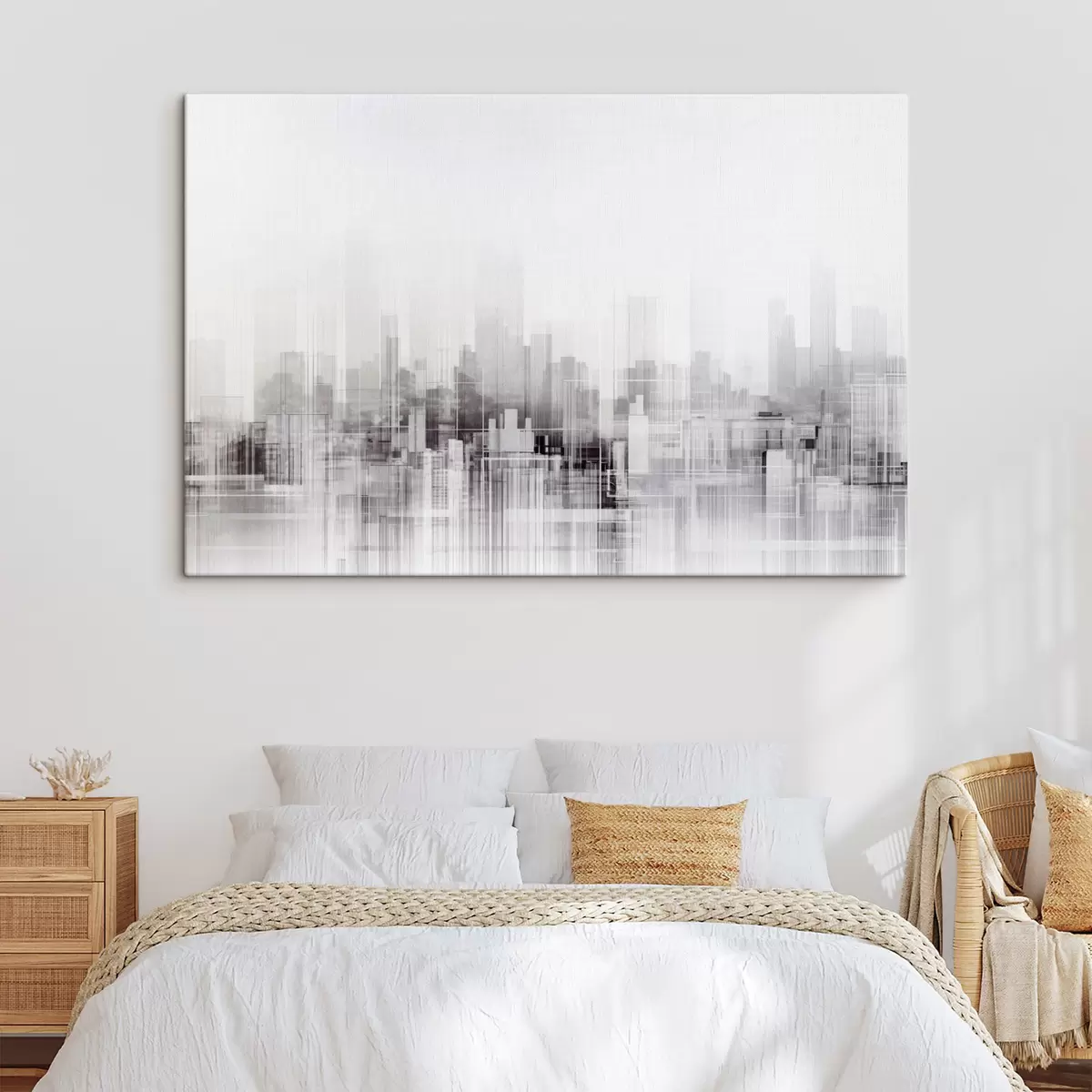 Obraz Textúrovaná minimalistická mestská krajina s vysokými budovami a mrakodrapmi v siluete na pozadí bielej oblohy Nr. s44863