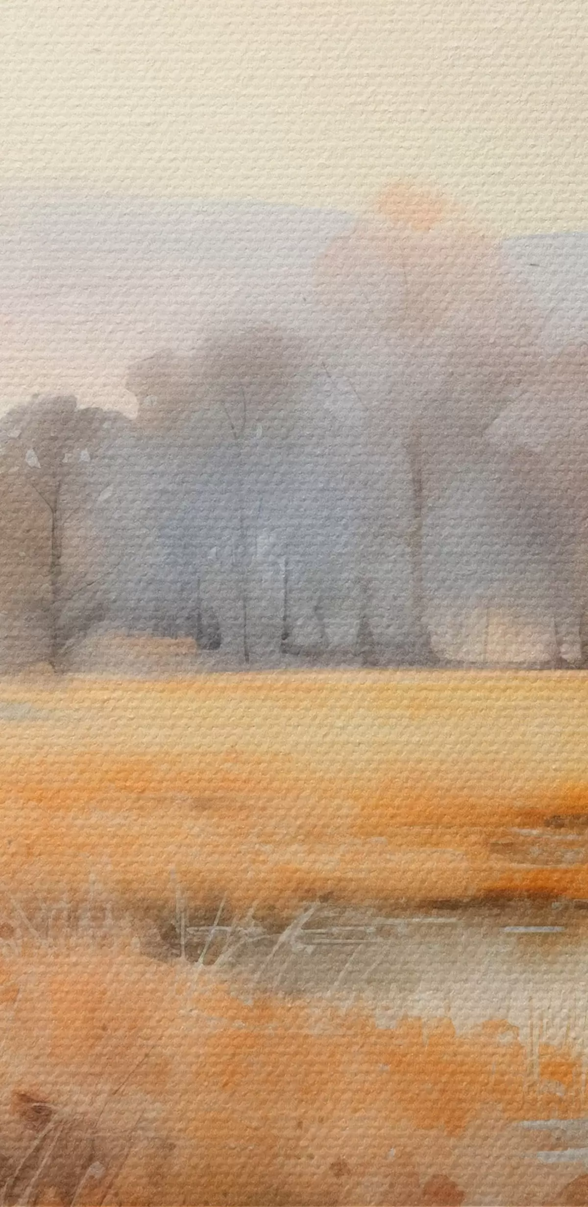 Obraz Pokojná krajinomaľba s textúrou imitujúca trstinu a holé stromy, pokojnú vodu pod oblohou Nr. s44867