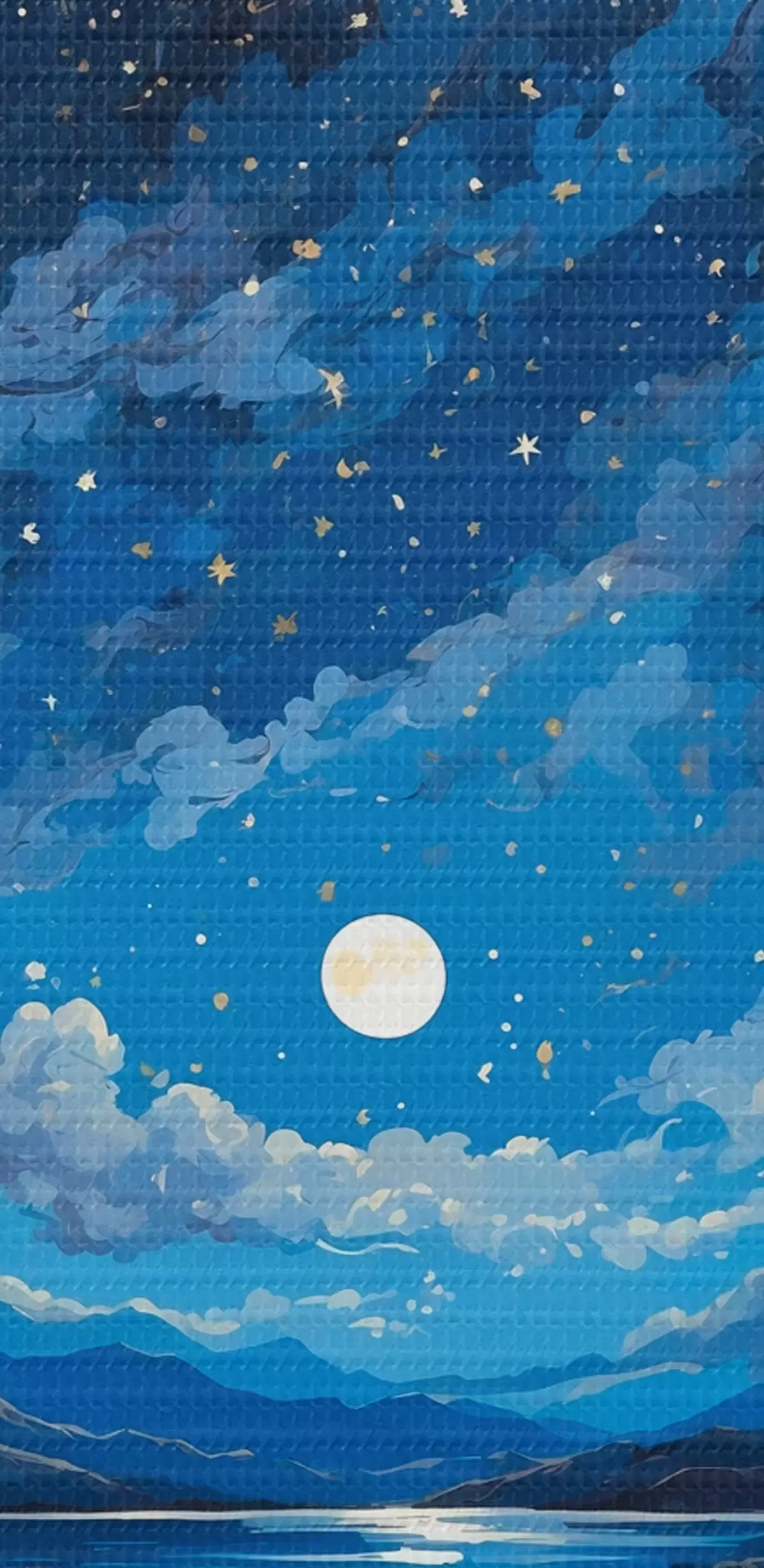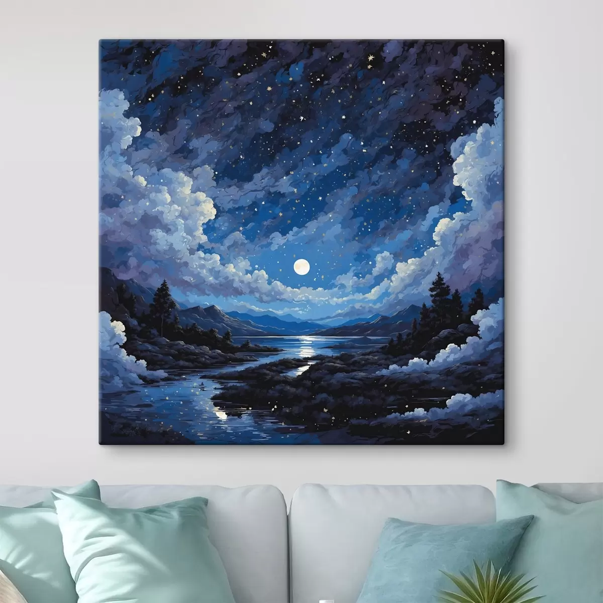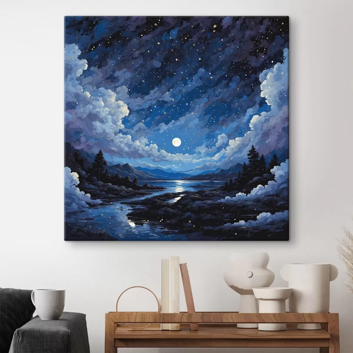Obraz Nočná obloha s mesiacom a hviezdami nad horskou krajinou Nr. s44872