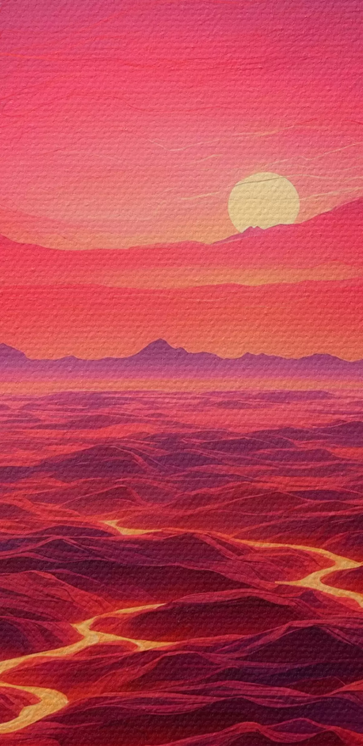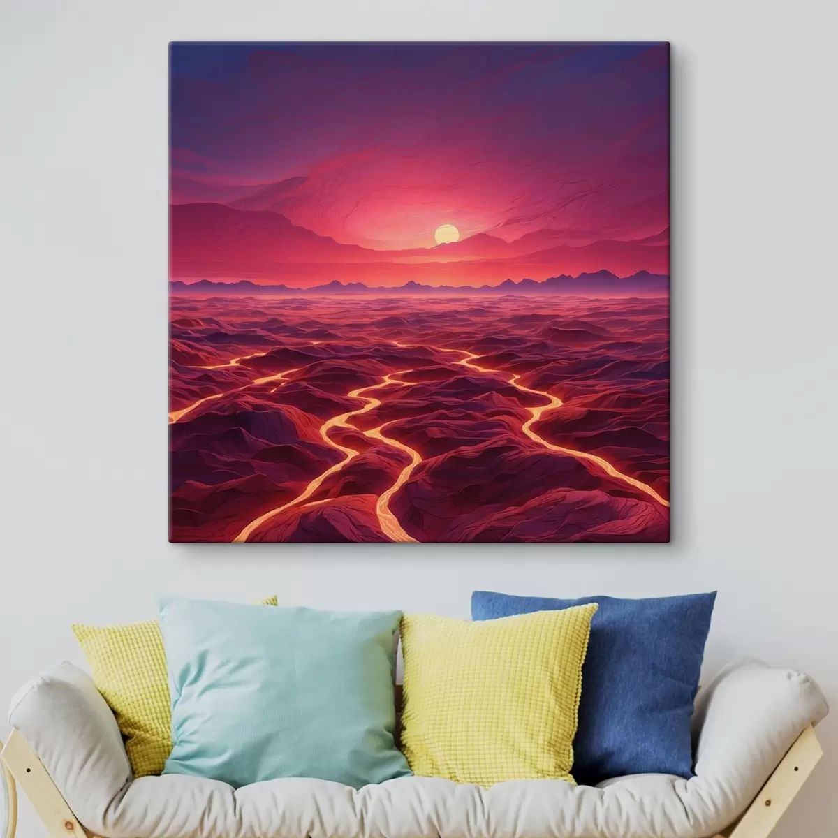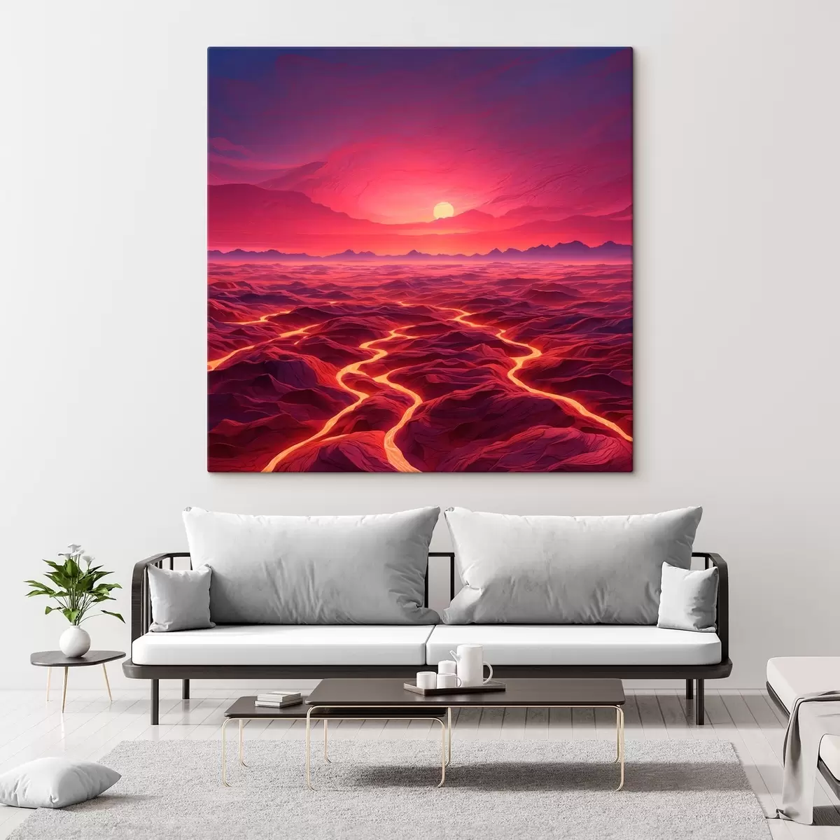 Obraz Horúca krajina s lávovými prúdmi pod červenou oblohou Nr. s44886