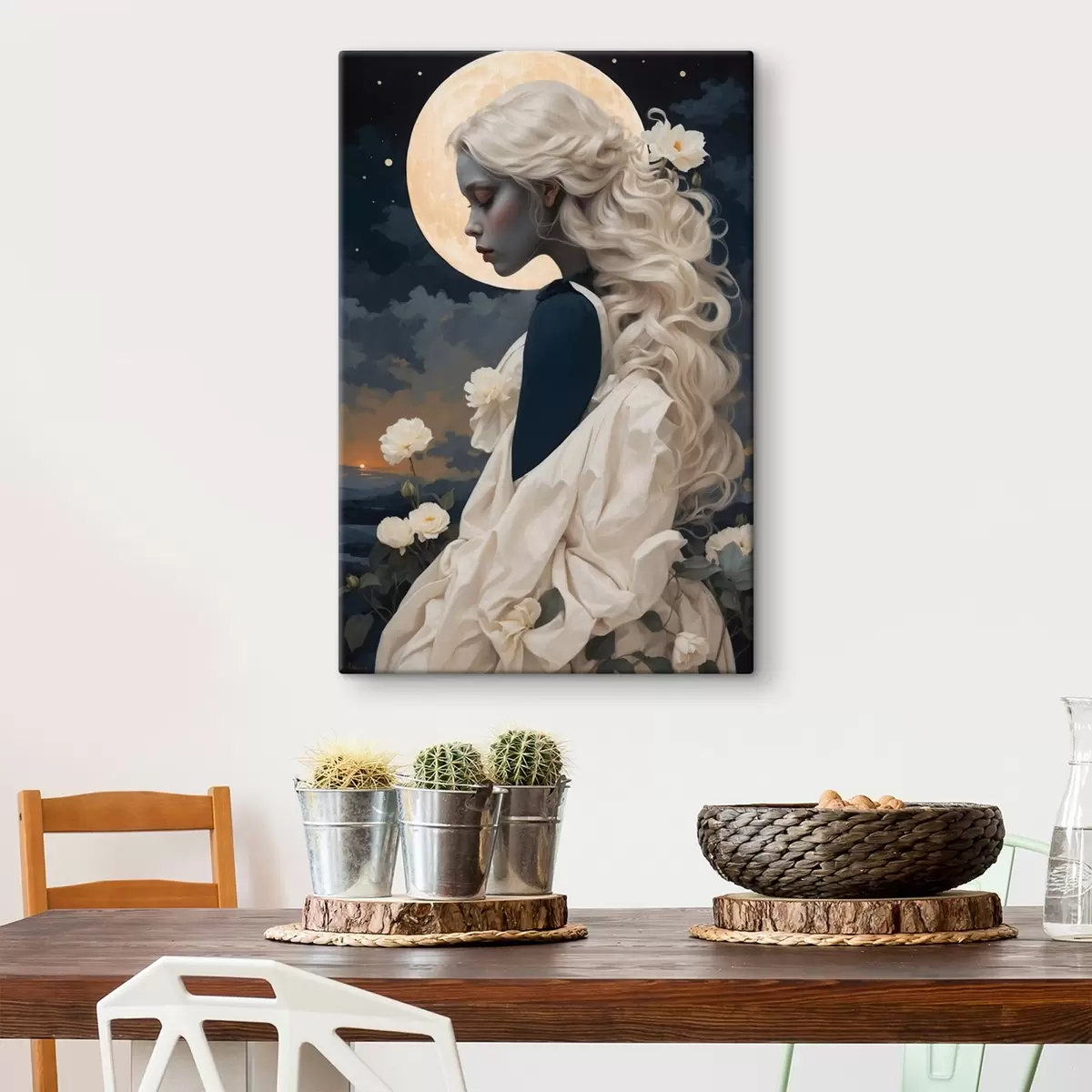 Obraz Portrét dievčaťa s bielymi vlasmi a mesiacom v splne Nr. s44887