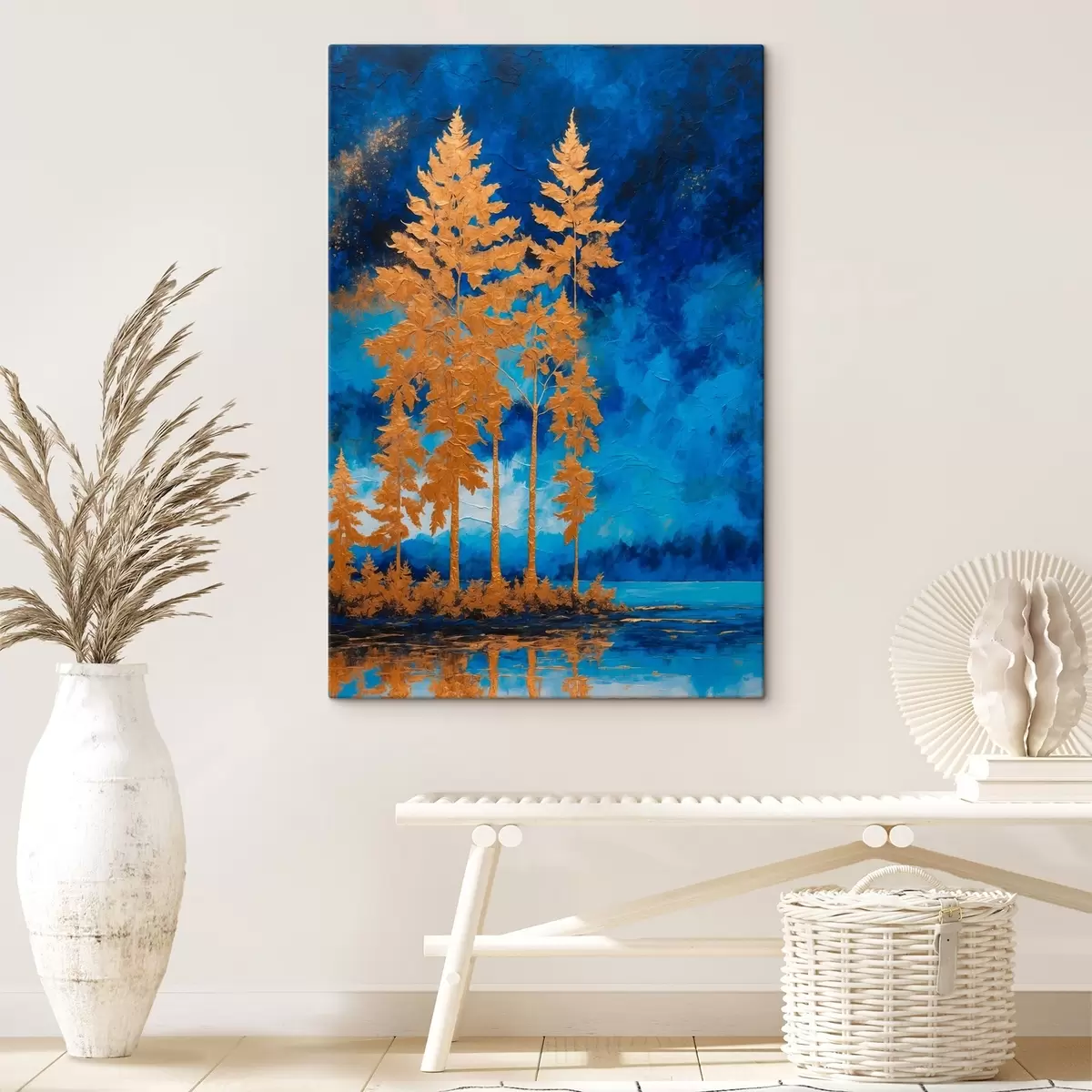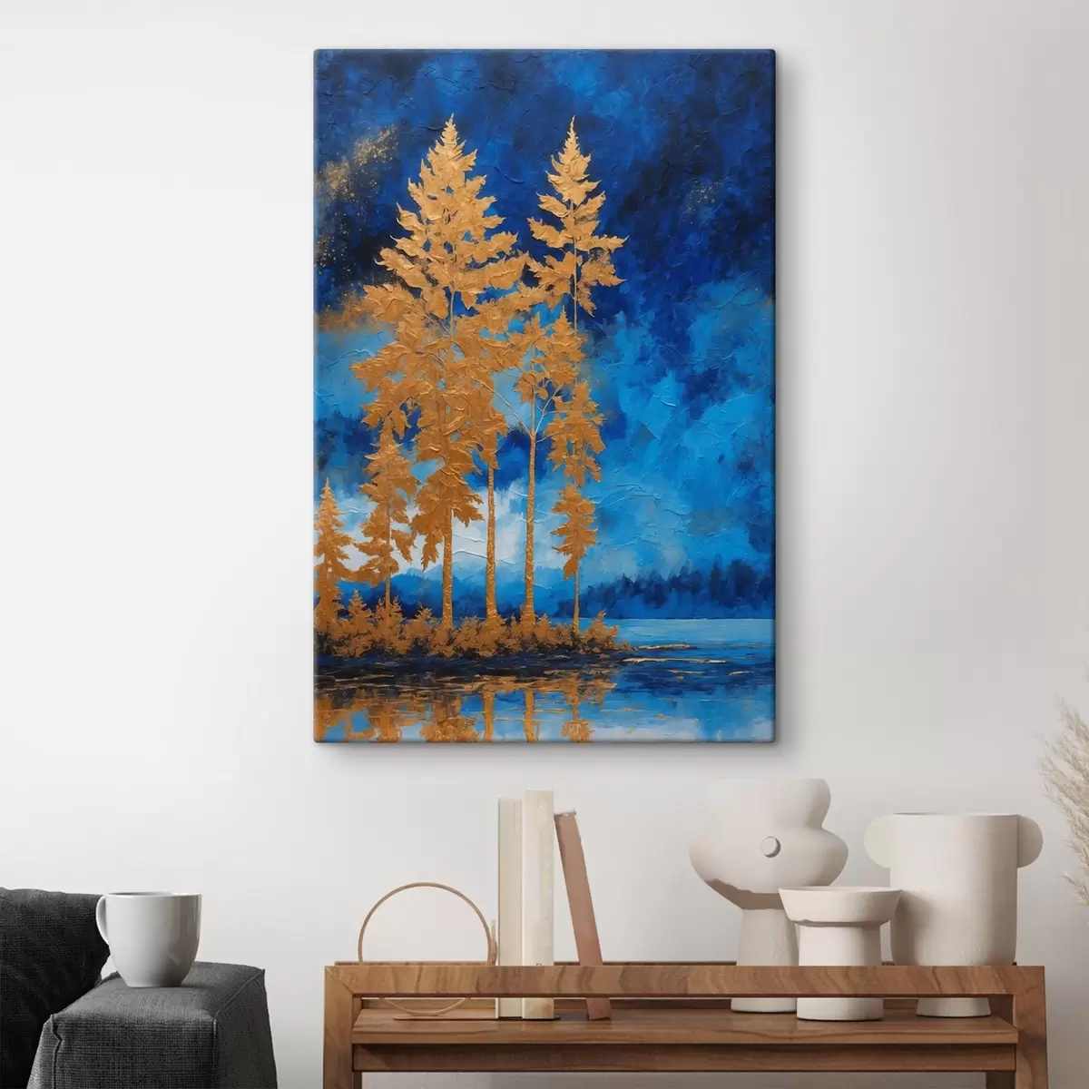 Obraz Stromy na pozadí nočnej oblohy v modrých tónoch Nr. s44888