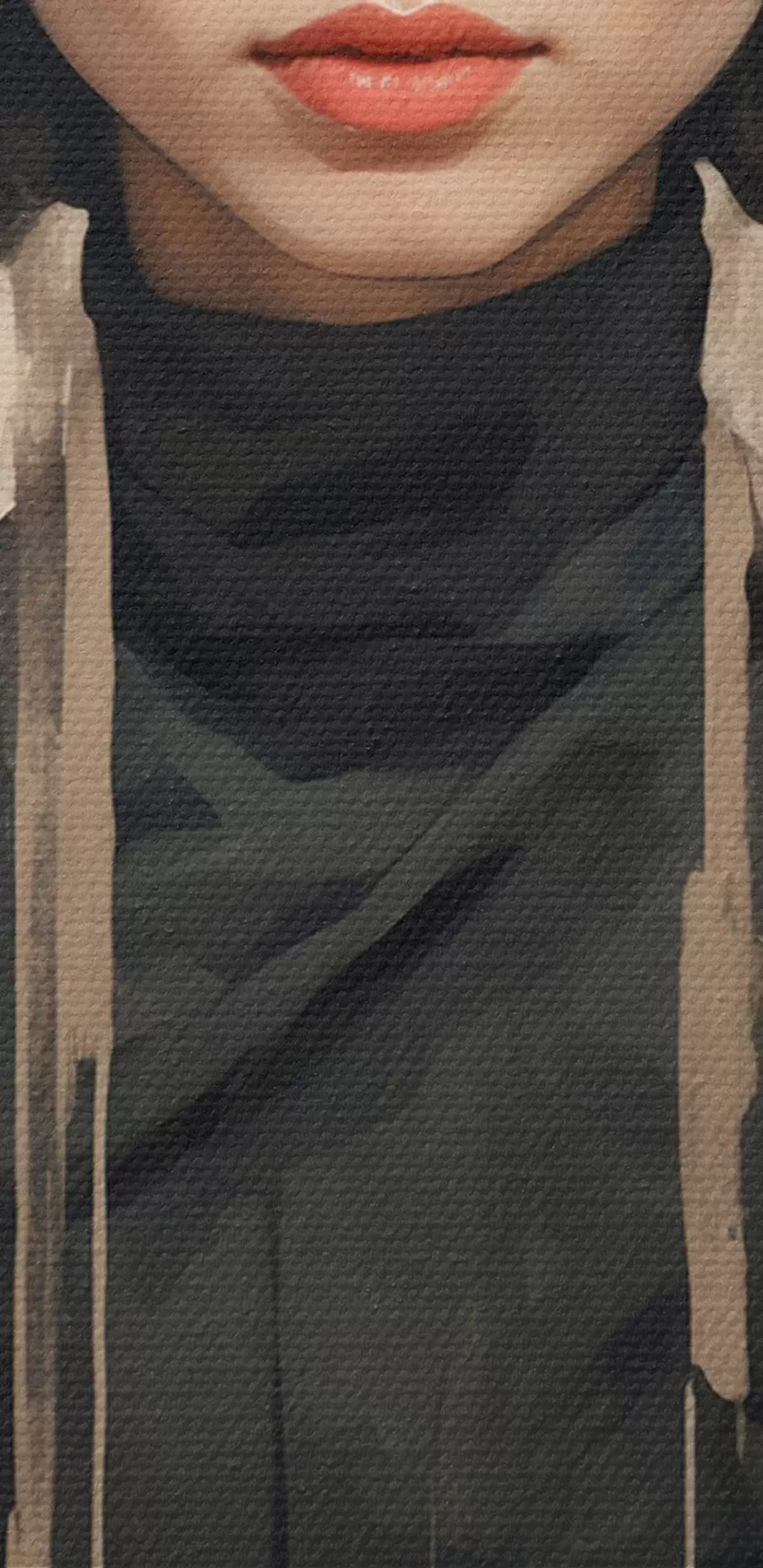 Obraz Portrét ženy s krátkymi tmavými vlasmi na abstraktnom pozadí Nr. s44890