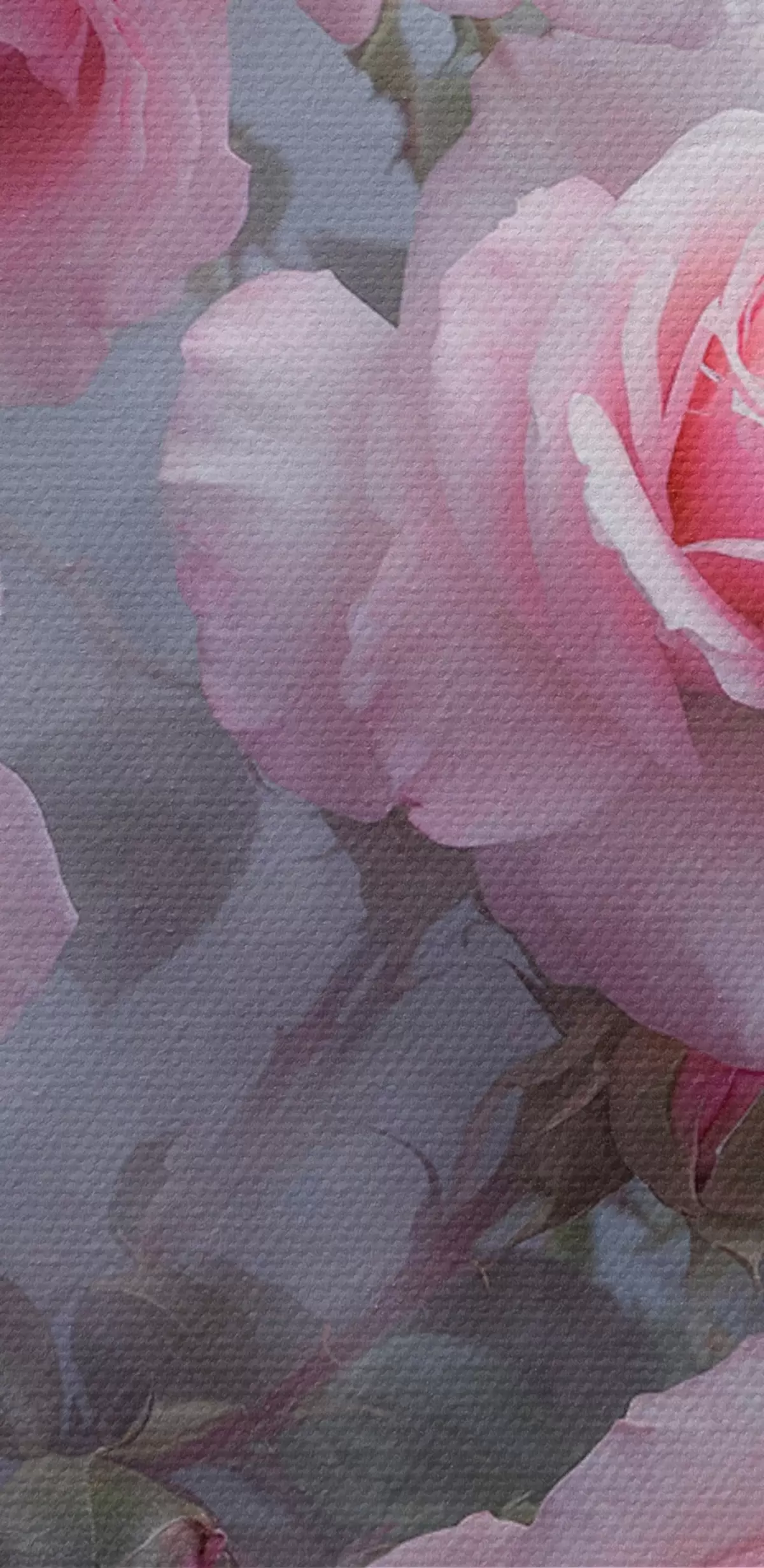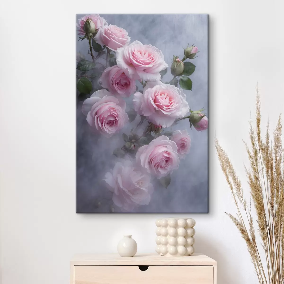 Obraz Jemne ružové ruže v hmle so zelenými listami Nr. s44892