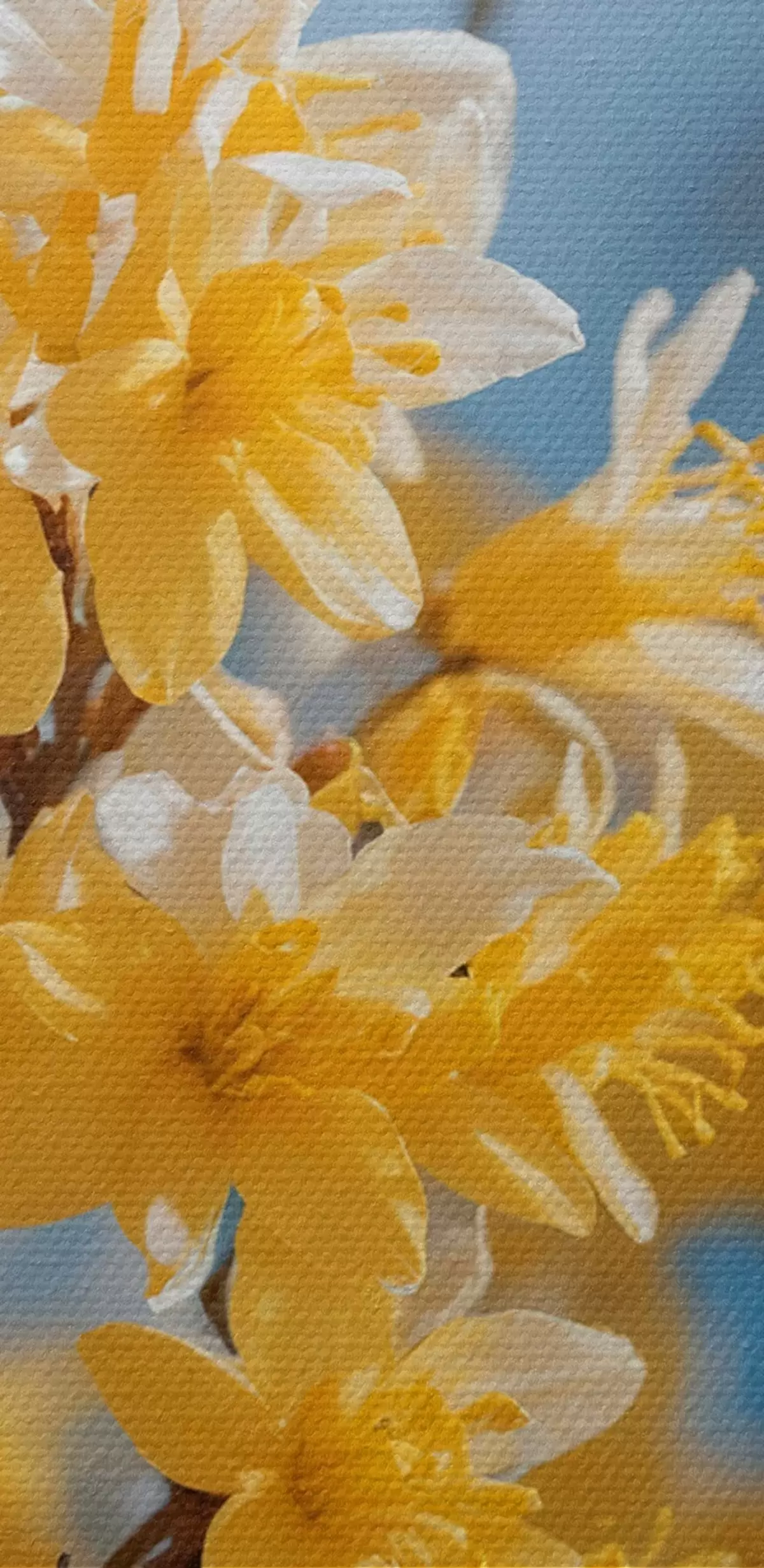 Obraz Žlté kvety na modrom pozadí s mäkkým zaostrením Nr. s44894