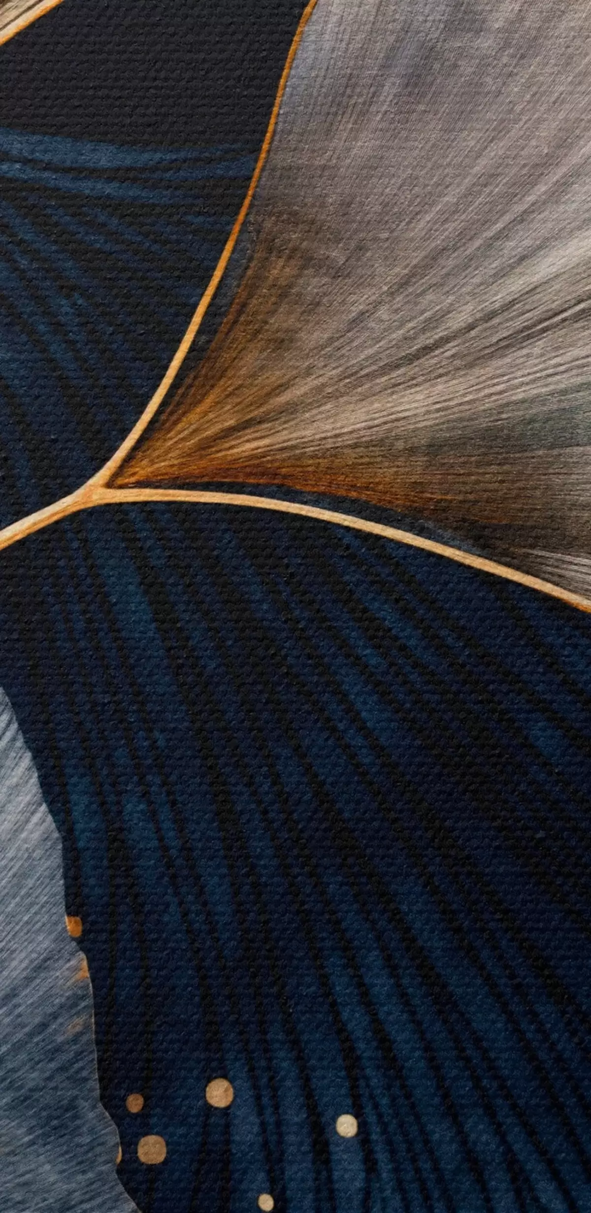 Obraz Listy ginka v žltých a modrých tónoch, elegantné tmavé pozadie, moderné umenie, minimalistický štýl, inšpirovaný prírodou Nr. s44921
