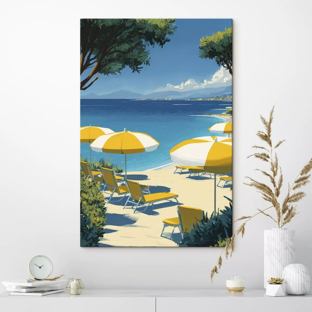 Obraz Letná pláž so slnečníkmi a stromami Nr. s44974