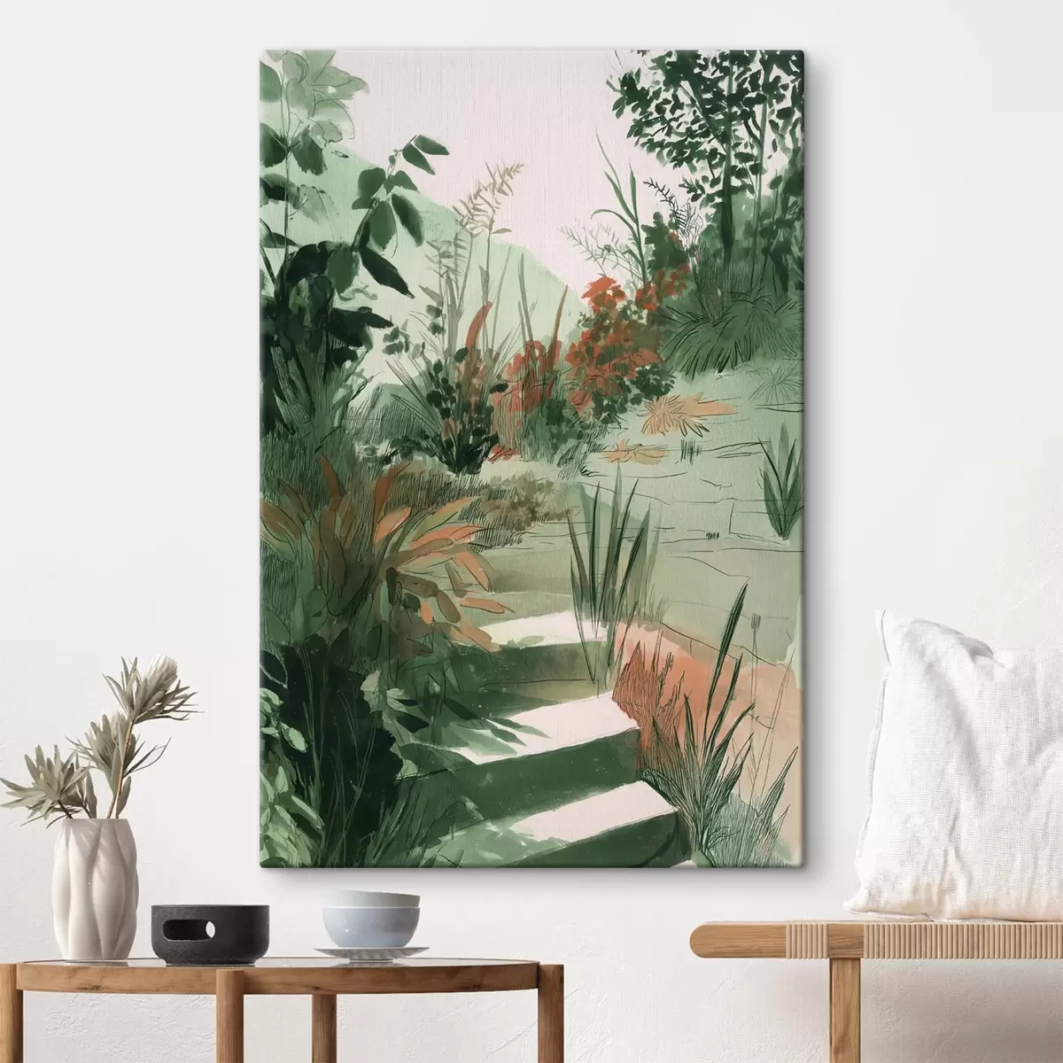 Obraz Orientálna záhrada s kríkmi a stromami, zelené farby Nr. s44982