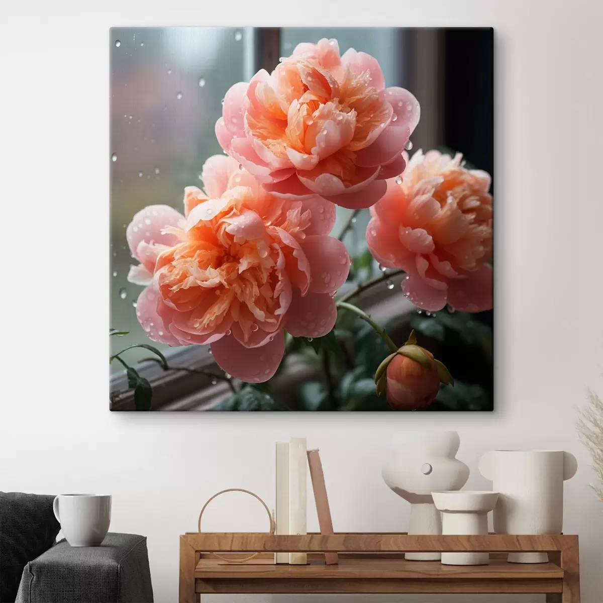 Obraz Tri pivonky s rosou v rannom svetle Nr. s45033