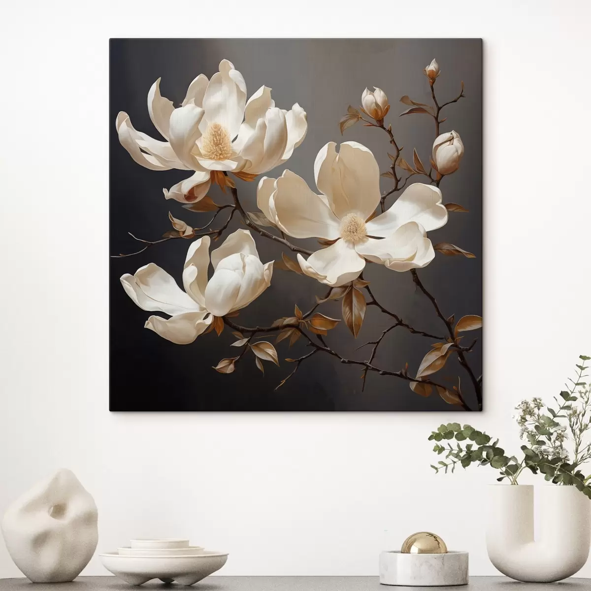 Obraz Biele magnólie na tmavom pozadí v maliarskom štýle Nr. s45038