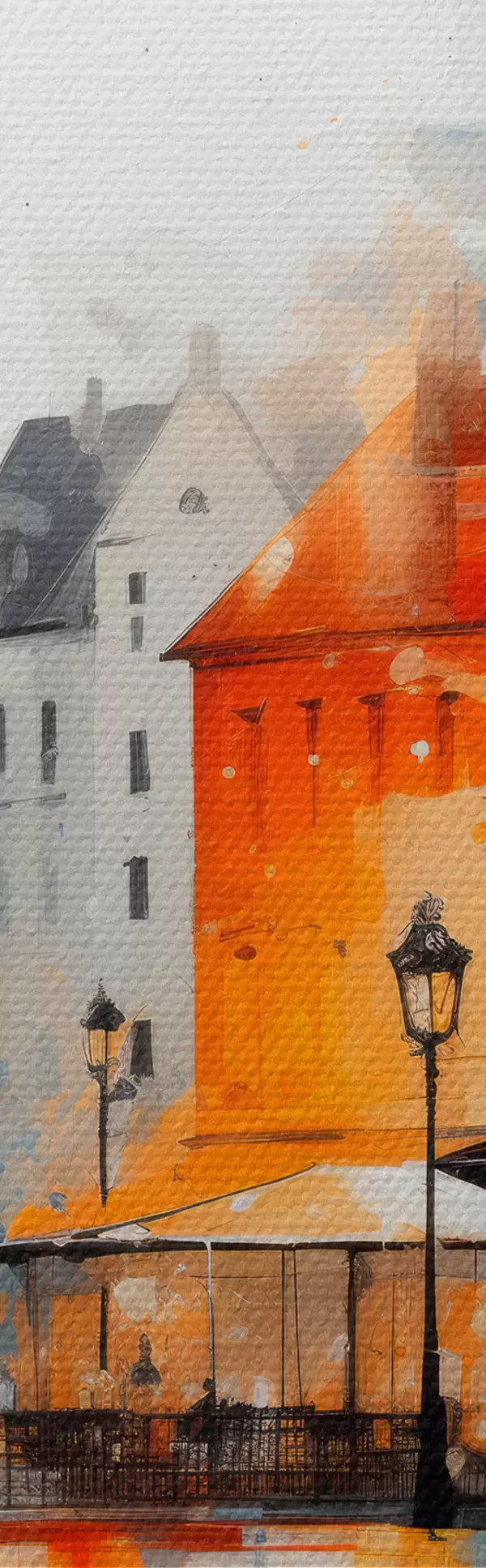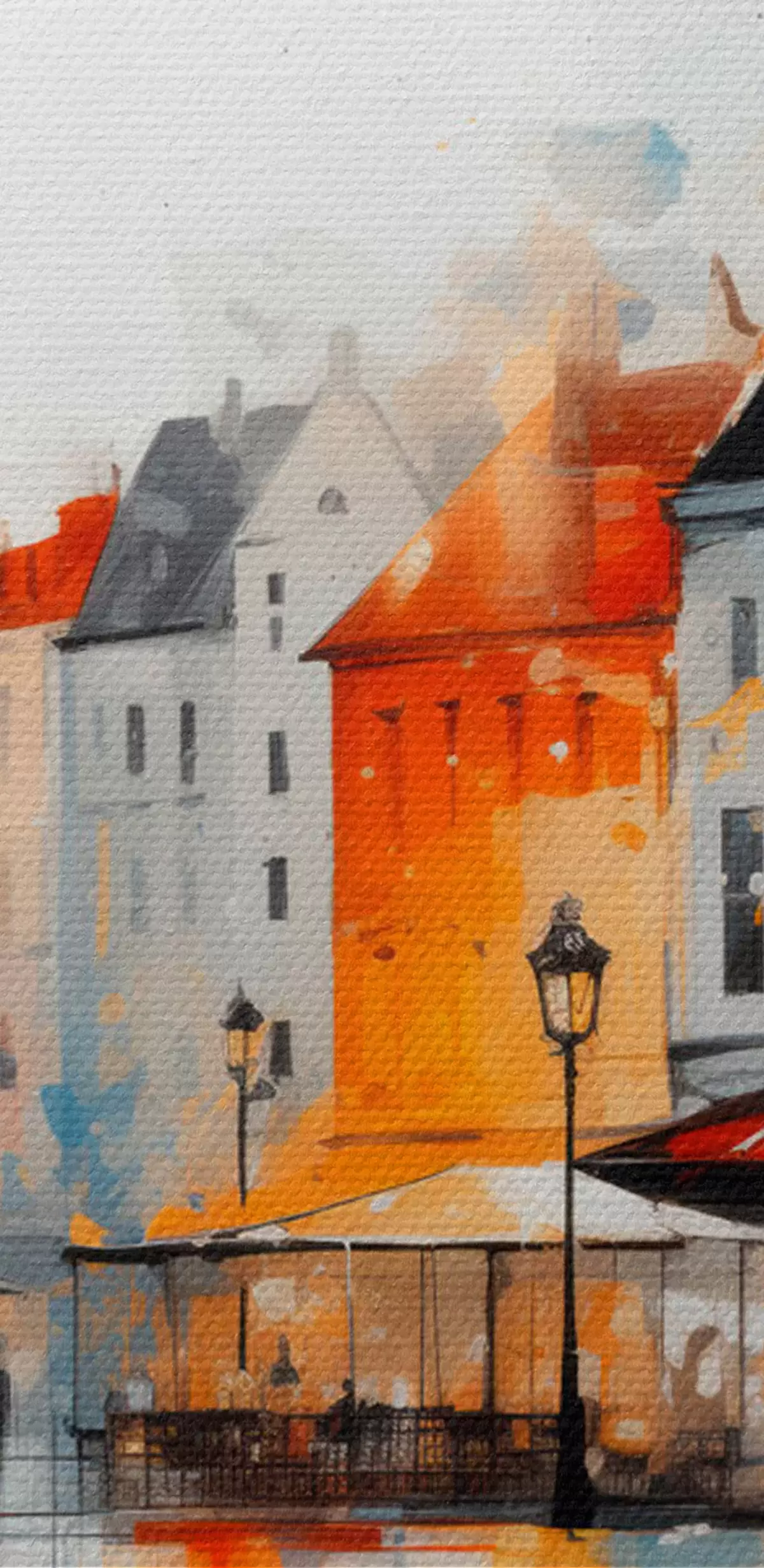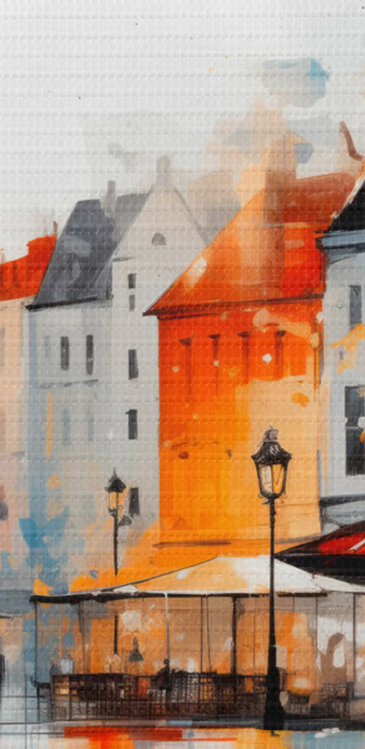 Obraz Uličná scéna s budovami a ľuďmi v umeleckom štýle Nr. s45050