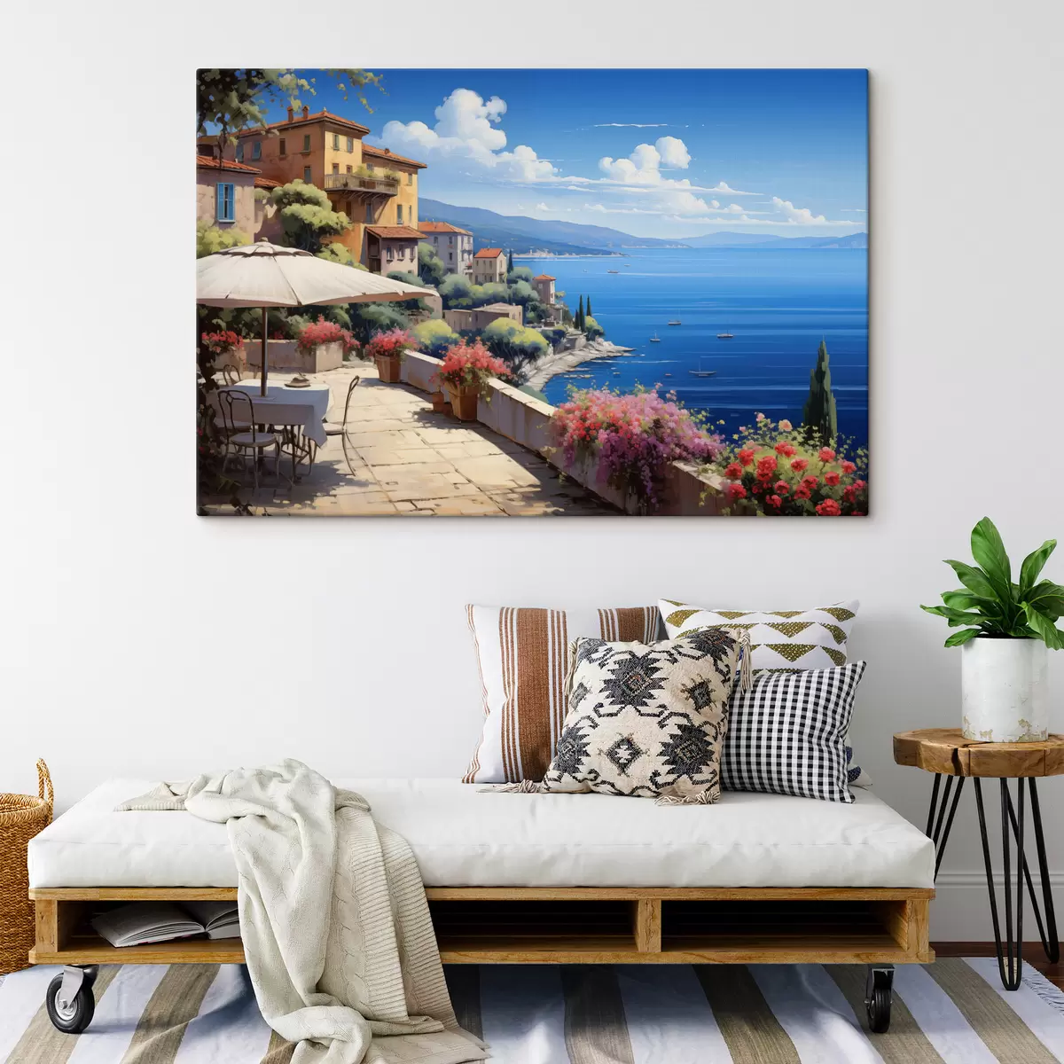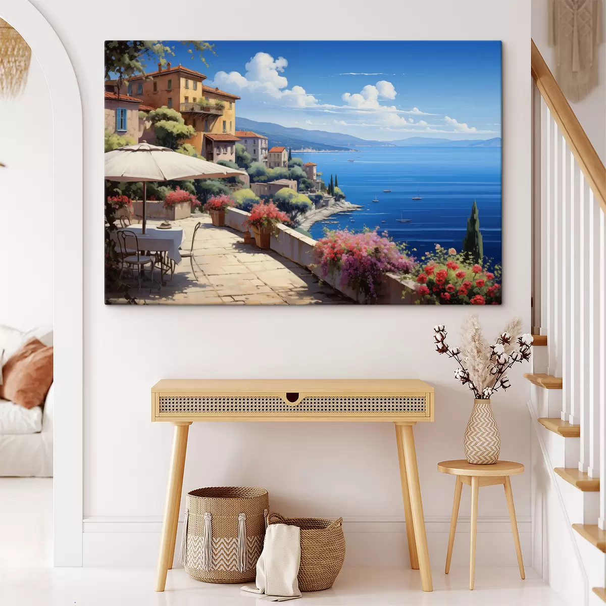 Obraz Stredomorská krajina s rozkvitnutou terasou v umeleckom štýle Nr. s45053