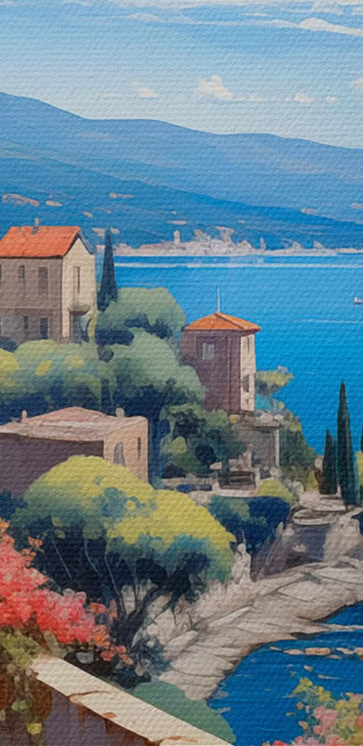 Obraz Stredomorská krajina s rozkvitnutou terasou v umeleckom štýle Nr. s45053