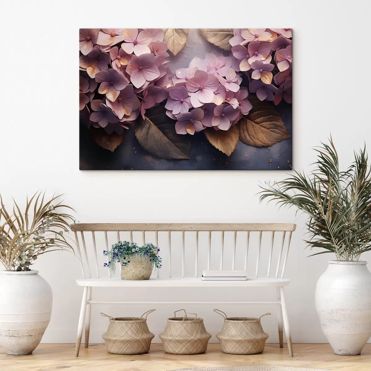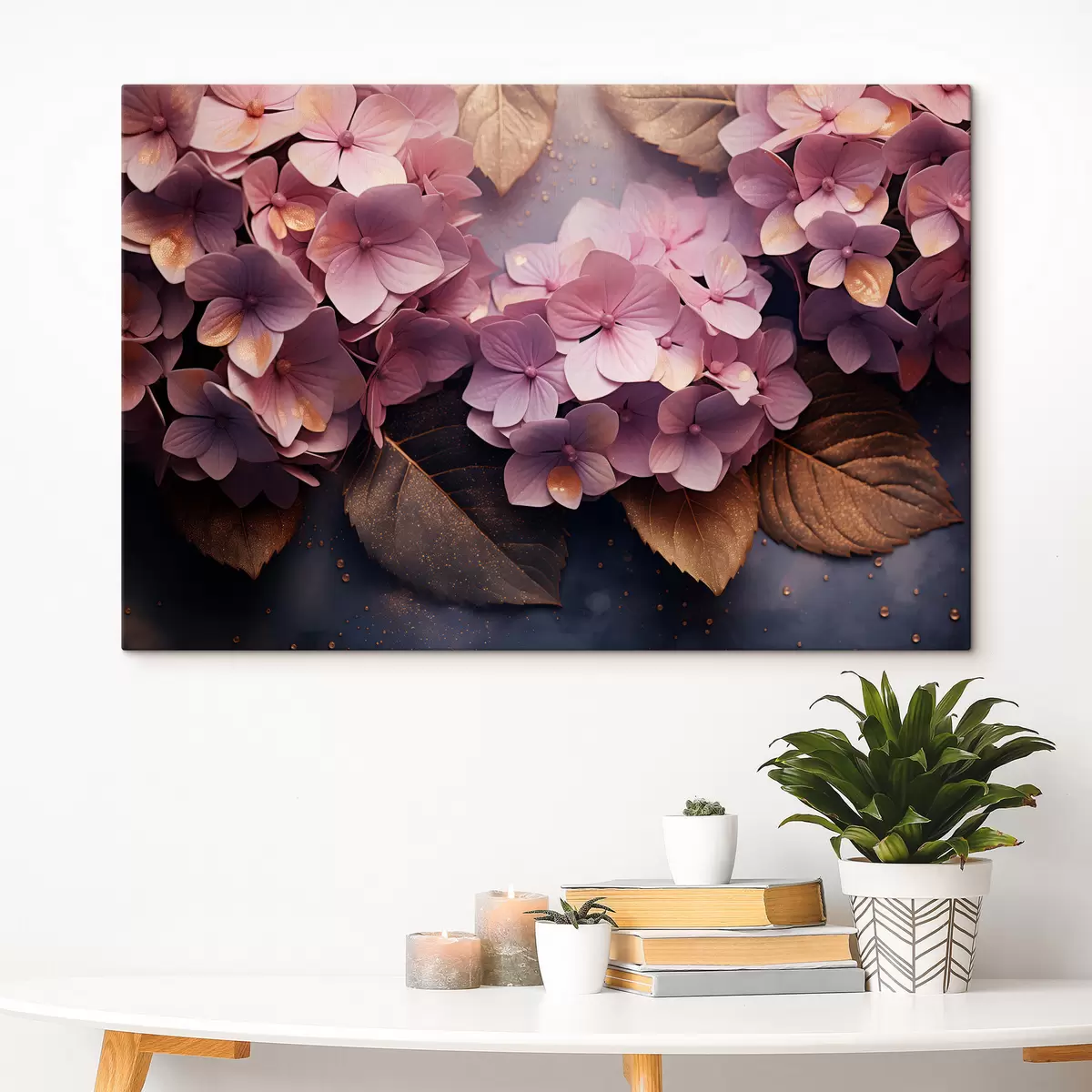 Obraz Svieže ružové hortenzie na tmavom pozadí v maliarskom štýle Nr. s45054