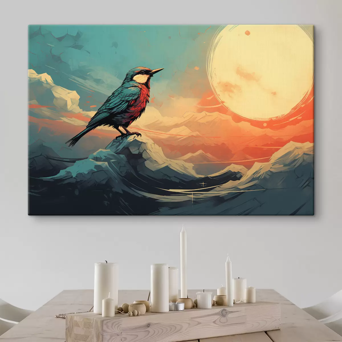 Obraz Umelecká krajina s vtákom a žiarivou oblohou Nr. s45060