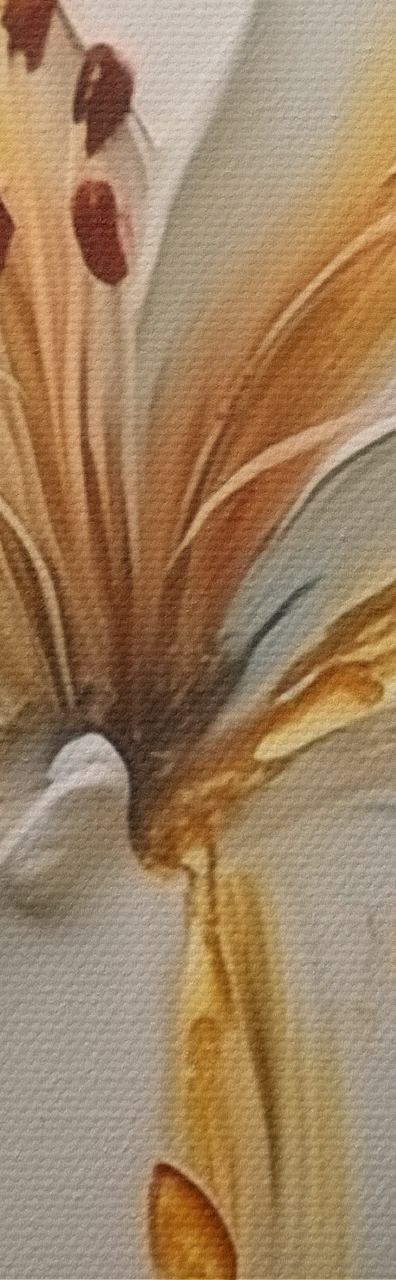 Obraz Biela ľalia so žltými ťahmi na modrom pozadí Nr. s45077