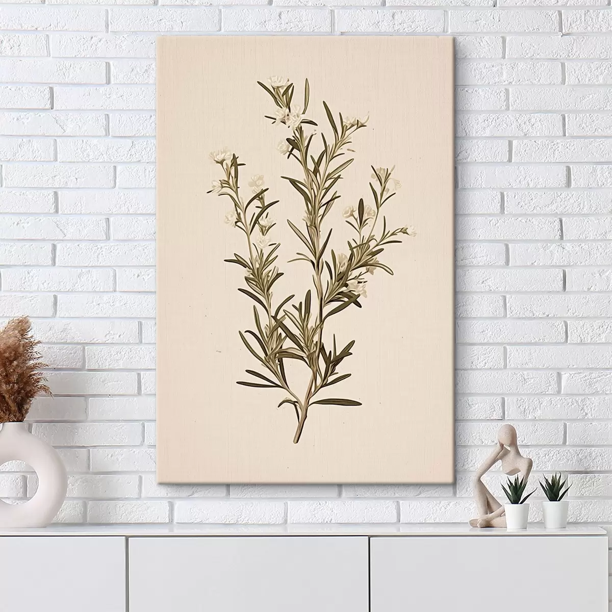 Obraz botanické, béžové pozadie, bylina, minimálna, rastlina, zelené listy, stonka, vetva Nr. s45098
