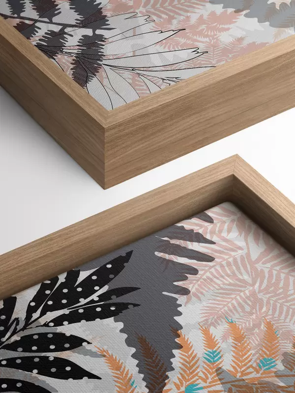 Obraz tropické listy, grafické, textúra, béžová a čierna, silueta, súčasné, rastlina Nr. s45103